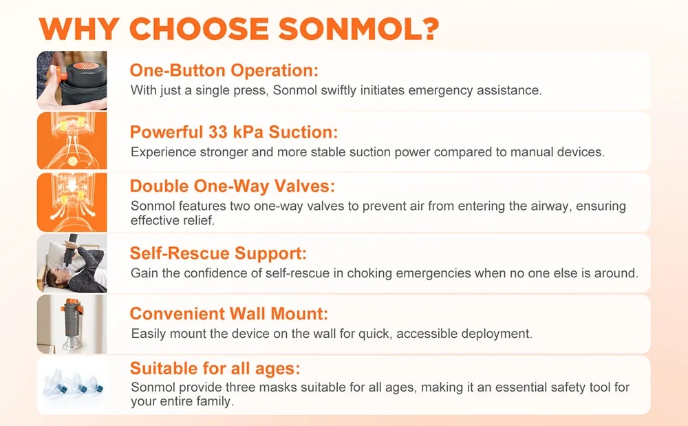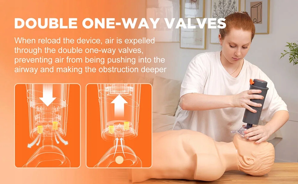 забезпечує постійне смоктання приблизно 33 кПа, що може своєчасно мати тиск для полегшення задухи, спричиненого сторонніми органами, забезпечити Найкращий ефект з кожним використанням і допомагає відновити нормальну функцію дихання. Обличчя та шия, що ефективно запобігає вторинним травмам, спричиненим неправильним використанням та наданням безпечніших та надійних рятувальних операцій.