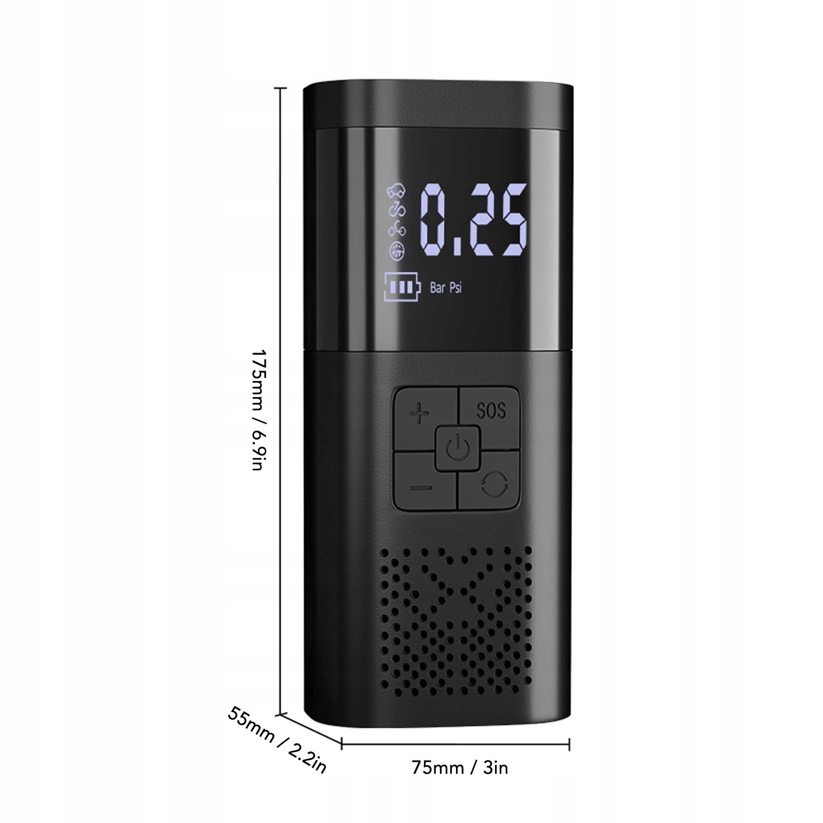 • Рідкокристалічний дисплей. Інтелектуальний тип керування. Повітряний насос, натисніть і утримуйте клавішу «O» протягом 3 секунд, щоб увімкнути живлення та встановити тиск рідкокристалічного екрана, автоматичне вимкнення через 60 секунд. мотоцикли та велосипедні м’ячі.