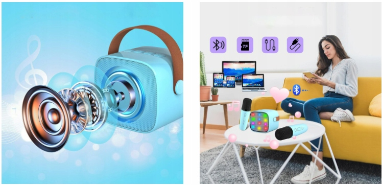 ☑️- 【Караоке-машина для тривалого відтворення】: 🔋 Вбудований акумулятор караоке-машини може працювати 5-10 годин після повної зарядки, дозволяючи вам насолоджуватися караоке без перерви. 🎉🎶 Ідеально підходить для днів народження, Різдва, вечірок та інших заходів на природі. 🎂🎄 Цей караоке-набір для дітей можна використовувати як караоке-систему, музичний плеєр, колонку з мікрофоном та багато іншого. (Ви також можете використовувати динамік без мікрофона.) 🎤🔊
