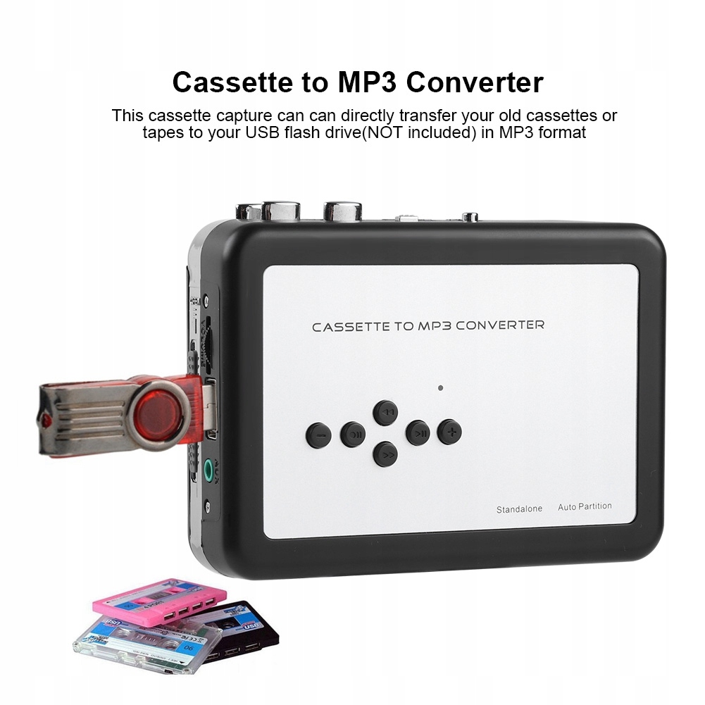 перетворювач з касети в mp3 - Ця касета з захопленням може безпосередньо перенести старі касети або стрічки на USB -накопичувач (не включати) у формат MP3.
