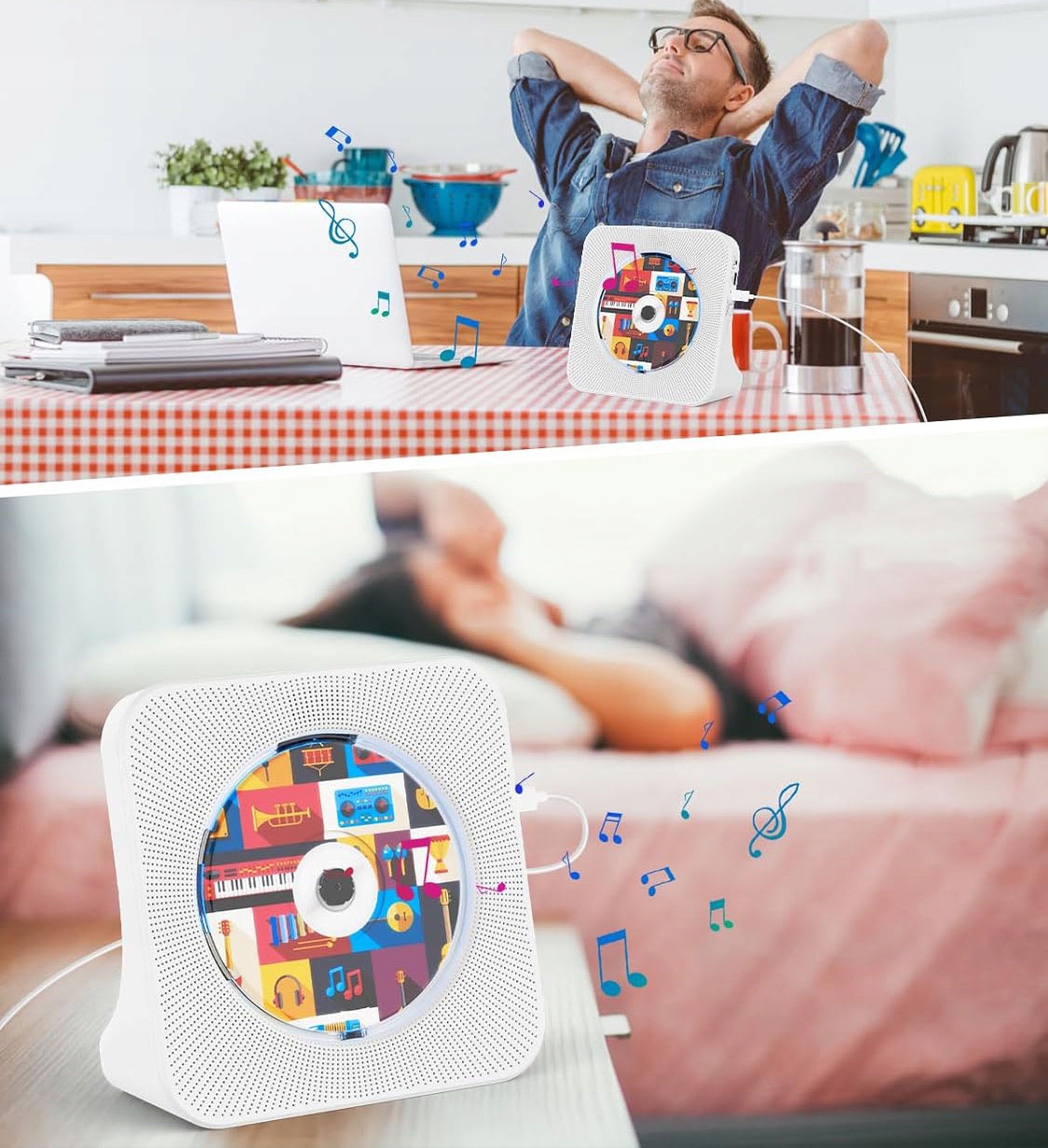 Подвійні динаміки створюють звук HiFi із цього портативного програвача компакт-дисків. Підключіть зарядний пристрій USB до стіни та підключіть кабель USB до програвача компакт-дисків, щоб насолоджуватися музикою вдома цілий день, оскільки звуку достатньо, щоб наповнити вашу кімнату, і є звук HiFi. Крім того, роз’єм для навушників забезпечує більше приватного простору для прослуховування улюбленої музики через навушники (не входять у комплект).
