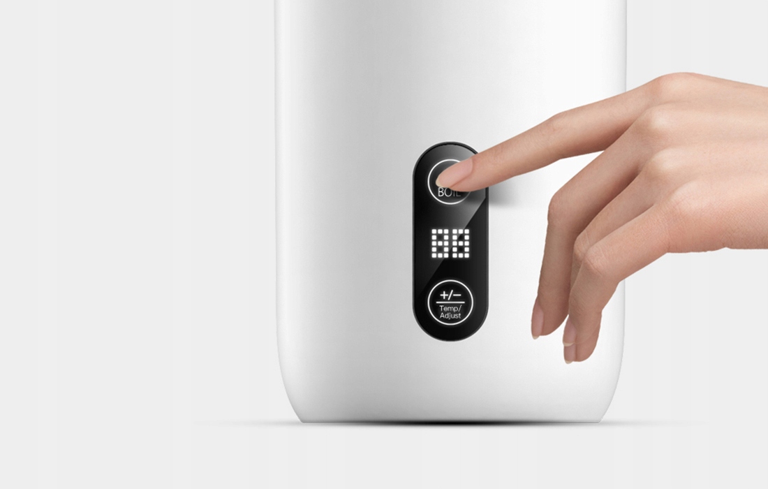 Пийте улюблені напої, не боячись обпектися. Термос оснащений точним датчиком, який вимірює поточну температуру води, кави чи чаю в реальному часі, а потім відображає її значення на чіткому екрані. Дві сенсорні кнопки, розташовані поруч з дисплеєм, дозволяють зручно керувати пристроєм. Використовуйте їх, щоб встановити бажану температуру або вибрати функцію кип’ятіння води.