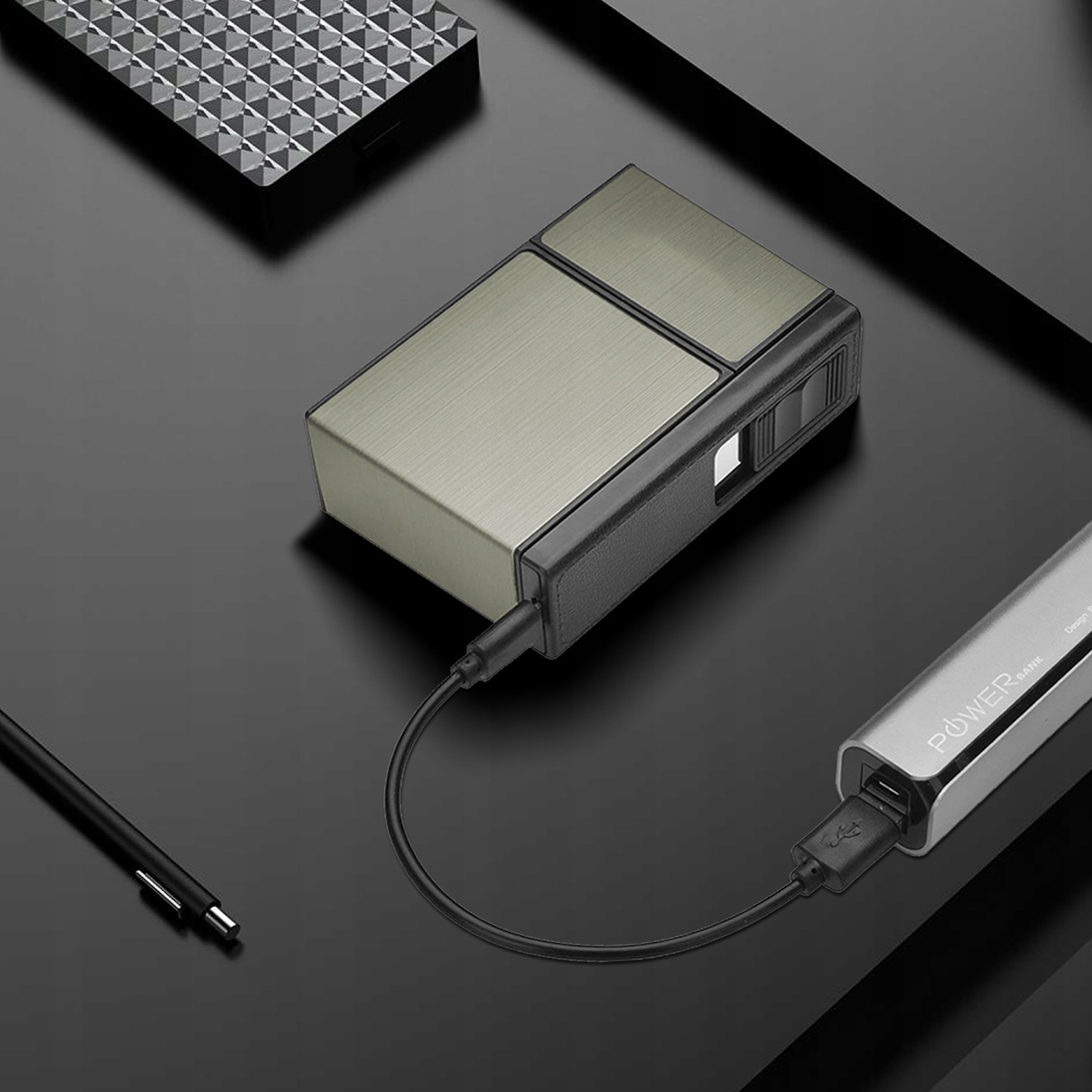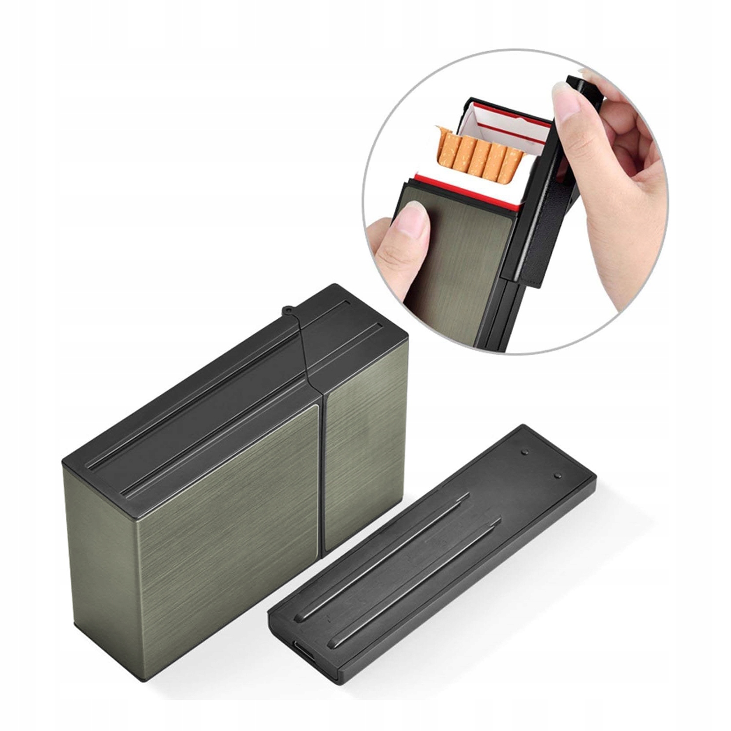 - Зовнішня частина виготовлена з алюмінію та внутрішнього пластику. Потягування, стійкість до вологи, хороша міцність на стиск, захищає сигарети.