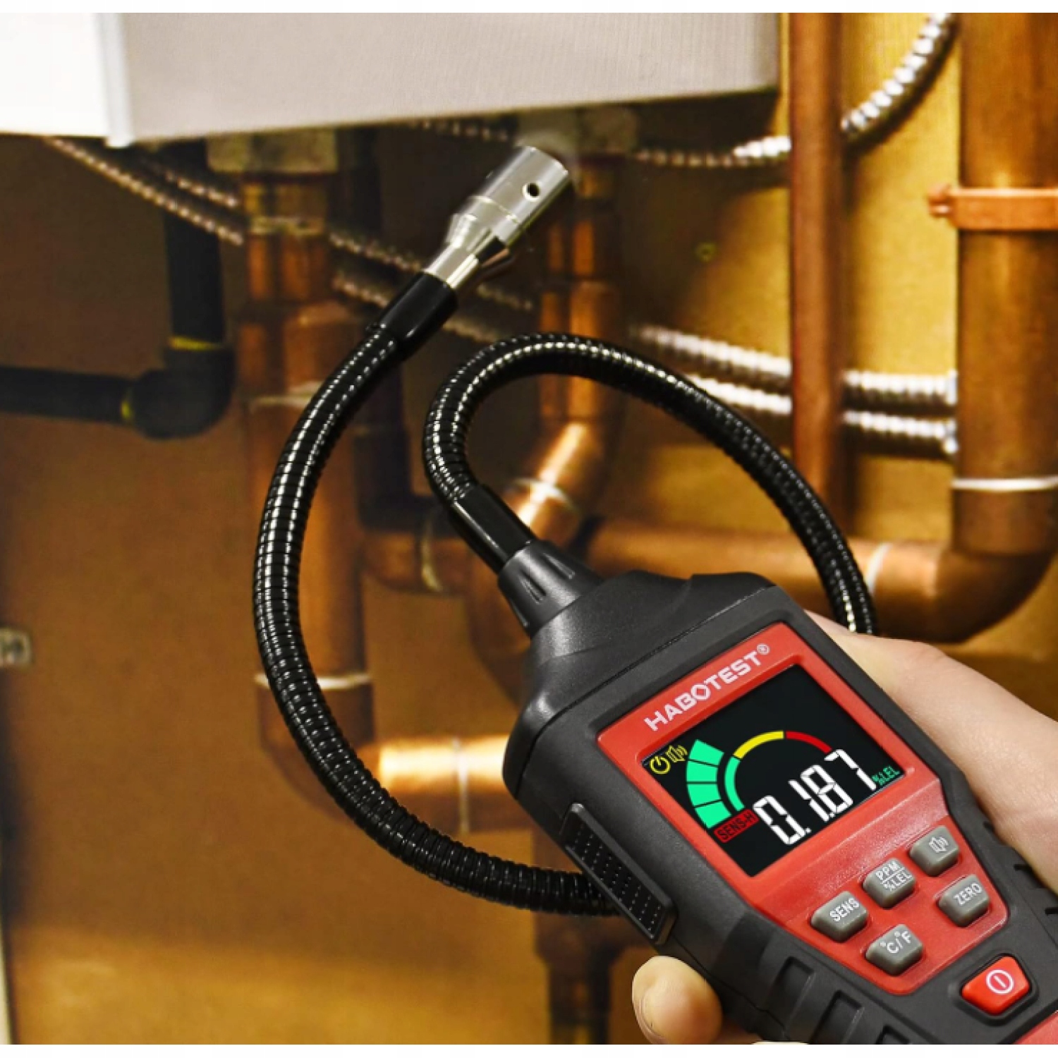 - 🌩️Обладнаний гнучким зондом 40 см, який може легко виконувати різноманітні вимірювання трубопроводу