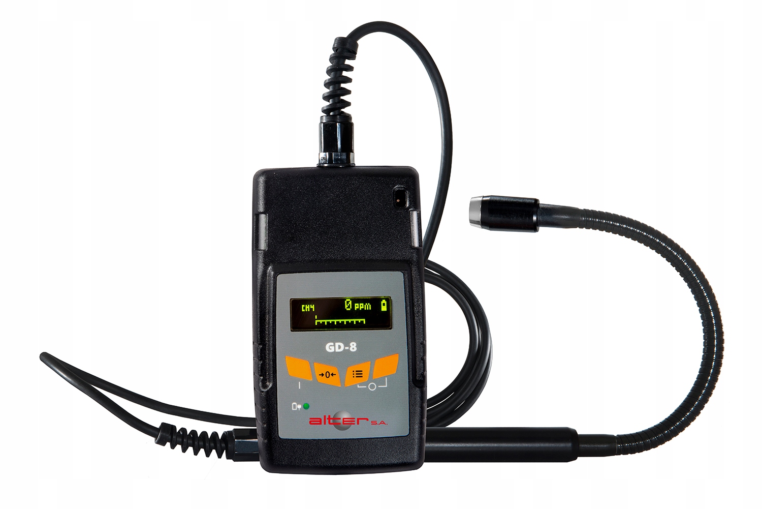 Двогазовий детектор типу GD-8 є простим у використанні пристроєм. Виявляє природний газ і LPG або інші вибухонебезпечні гази (за індивідуальним запитом клієнта).