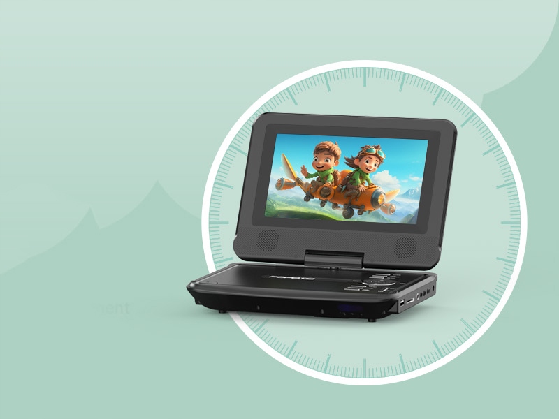 Наш портативний DVD-програвач оснащений довготривалим акумулятором ємністю 2500 мАг, який у повністю зарядженому стані забезпечує приблизно 4-6 годин роботи, чого достатньо для перегляду 2-3 фільмів без перерви. Завдяки сертифікованому високоякісному автомобільному зарядному пристрою ви можете безпечно використовувати його під час подорожей.