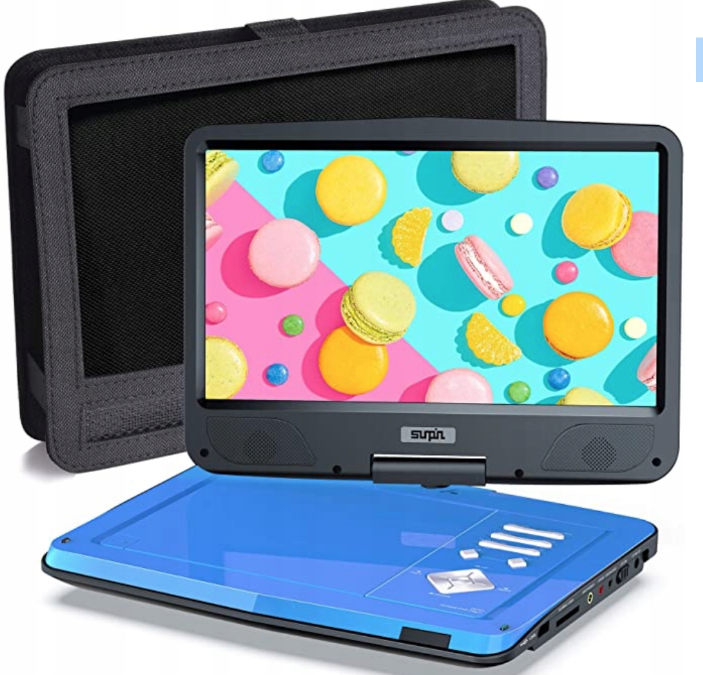 Портативний DVD-програвач SUNPIN для автомобіля та дітей з тримачем, 10,5" HD-екран, 5-годинний акумулятор, пульт дистанційного керування для автомобільного зарядного пристрою, настінний зарядний пристрій, регіон, синій