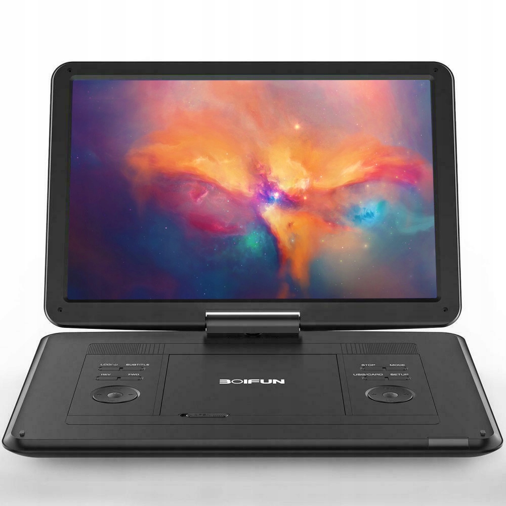 Портативний DVD-програвач Boifun має 15,6-дюймовий поворотний екран HD 1280 x 800 із функцією захисту очей і підтримує функцію повороту на 270° і нахилу на 180°. Дітям і батькам сподобається під час подорожі.