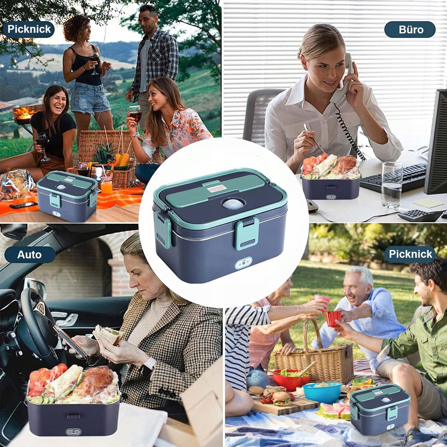 Портативний електричний харчовий контейнер подвійного використання синьо-зеленого кольору для автомобіля чи дому