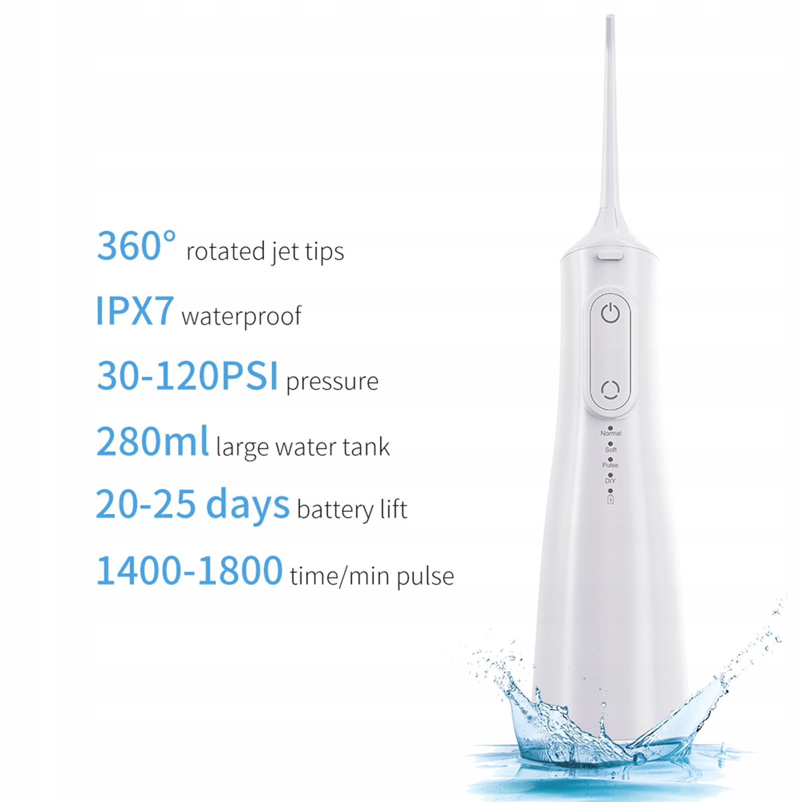 1. Компактна та легка конструкція: наш портативний пристрій з стоматологом води був розроблений для бездротового зв’язку, що полегшує взяти з собою, куди б ви не їхали. Ідеально підходить для подорожей або щоденного домашнього догляду, гарантує, що ви можете зберегти свою пероральну чисту рутину без зусиль.