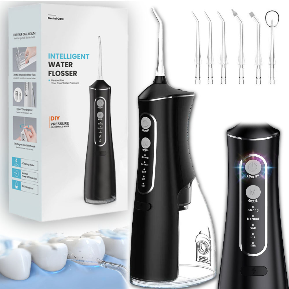 🦷🦷Портативний бездротовий іригатор порожнини рота, стоматологічний іригатор, резервуар для води на 300 мл із 5 змінними розпилювачами, 4 режими, водонепроникність за стандартом IPX7