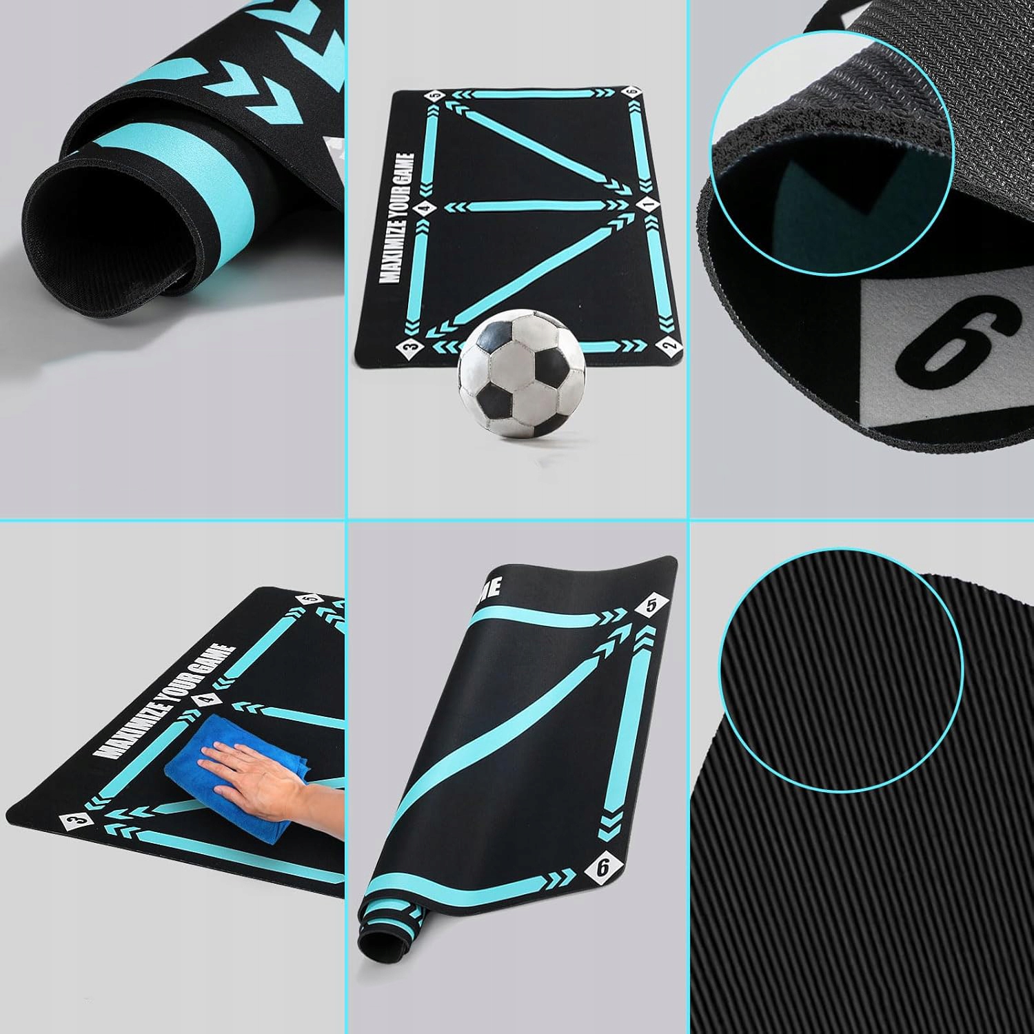 ⚽ 【Оволодіння контролем над м'ячем】: вдосконалюйте управління аркою ніг і сприяйте стороні м'яча завдяки нашому тренувальному килимку для футболу. Вдосконалюйте свої навички дриблінгу, отримайте хороший контроль над м'ячем і впевнено домінуйте на кроці. Цей навчальний килимок ідеально підходить для гравців на всіх рівнях, які хочуть покращити свою техніку.