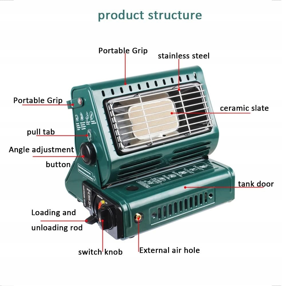 Багатофункціональний газовий обігрівач Багатофункціональна опалювальна плита має режими нагріву та приготування, які можна вільно перемикати. Його можна використовувати як радіатор для обігріву кімнати або використовувати для приготування їжі під час кемпінгу. Портативний газовий обігрівач Поворотна ручка середньої ширини не поранить і не подряпає руки. Легкий, зручний у транспортуванні. Підходить для кемпінгу, походів, подорожей, пікніків і найбільше підходить для прогулянок. Керамічний нагрівач. Енергоємна варильна поверхня згоряння збільшує поглинання безпосередньо нержавіючої сталі, яка швидше поглинає тепло, має вищу температуру та є більш ефективною. Ефективне запалювання Високоенергетичний п’єзоелектричний керамічний запальник дуже ефективний. Газовий регулюючий клапан оснащений ручкою регулювання, яка може точно регулювати та контролювати потужність вогню. Високоякісні матеріали та послуги Виготовлено з високоякісної нержавіючої сталі, міцної та стійкої до корозії.