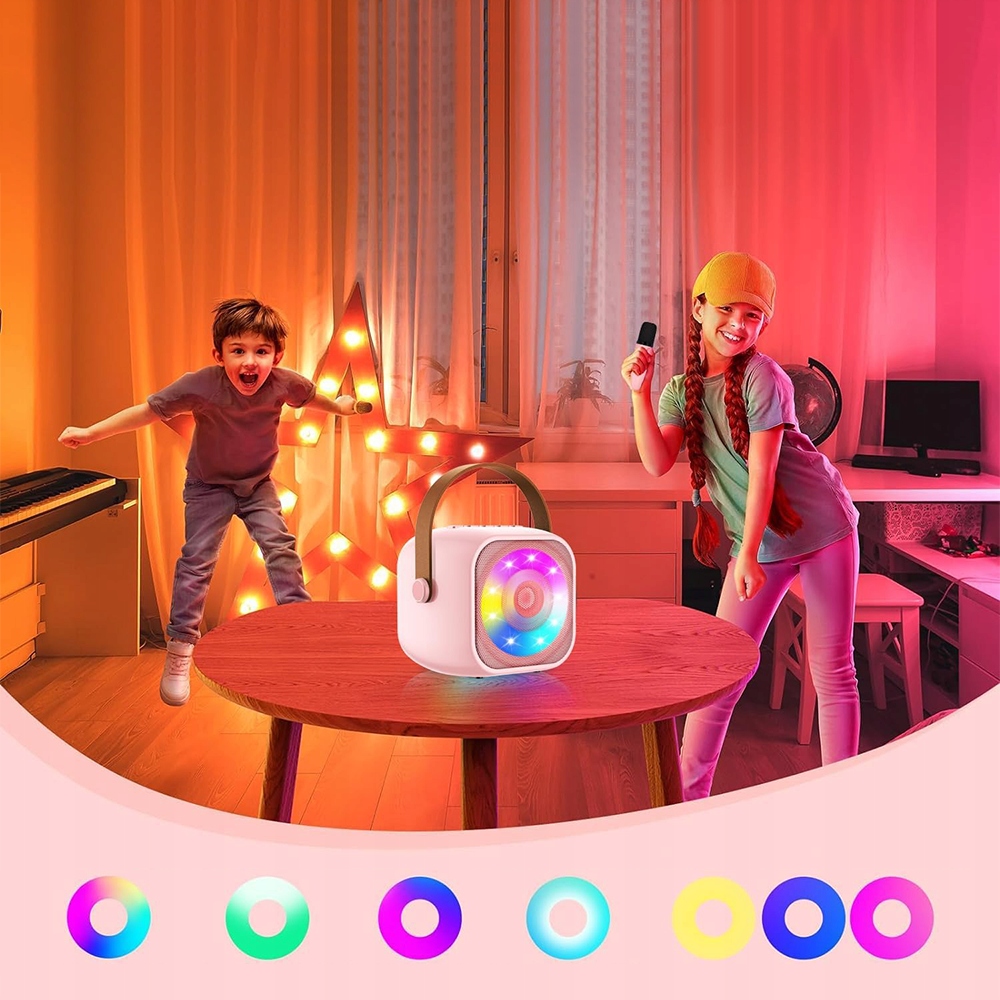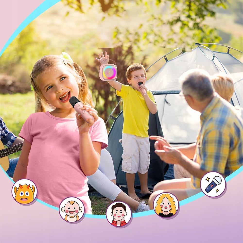 Завдяки компактному та легкому дизайну, діти можуть легко носити його з собою; Інтуїтивна конструкція кнопок робить їх дуже легкими; Комплексна функція видалення голосу забезпечує супровід та усуває оригінальний спів, завдяки якому ті, хто любить співати, можуть насолоджуватися справжнім звучанням. Цей мікрофон для караоке також є відмінним вибором, якщо вам потрібен табір у кемпінгу або подорожі.