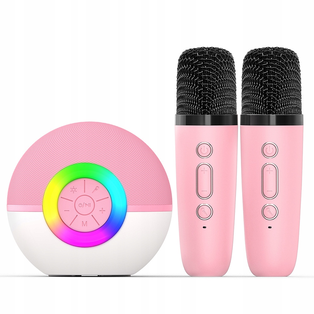 Портативний гучномовець, набір для караоке RGB Bluetooth 2 USB -джек -рожеві мікрофони