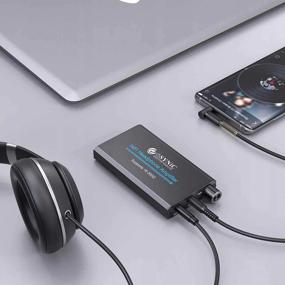 Підсилювач для навушників eSynic ESY111 допомагає посилити звук, тонкий, компактний, легкий і портативний, який можна зручно носити. Алюмінієва матова поверхня та модний дизайн забезпечують комфортне відчуття в руці. Сумісний з навушниками з опором 16-300 Ом.