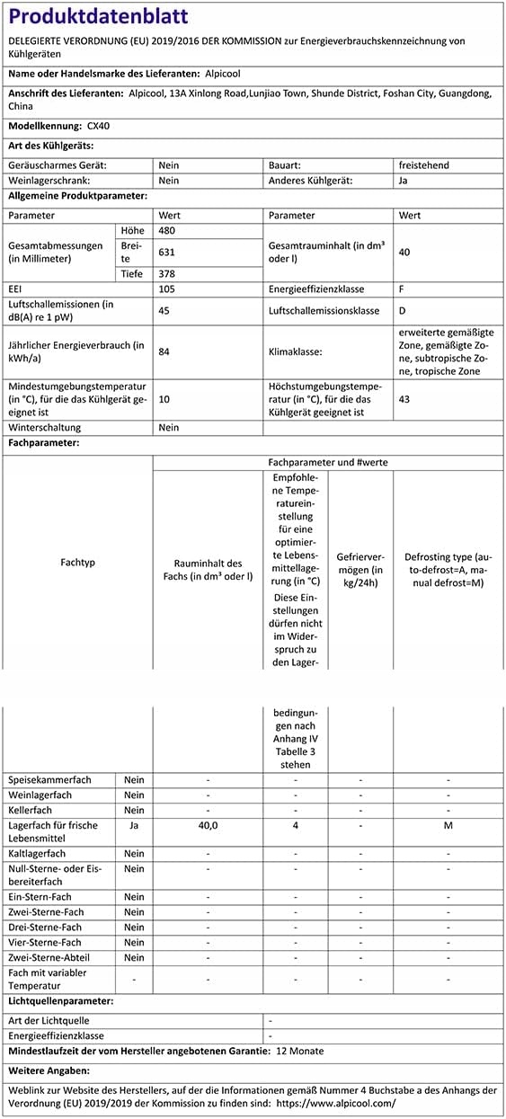 Велика місткість в 40 літрів дозволяє зберігати багато різних продуктів. Ідеально підходить для кемпінгу, пікніків або тривалих подорожей, і його можна живити від автомобільного прикурювача.