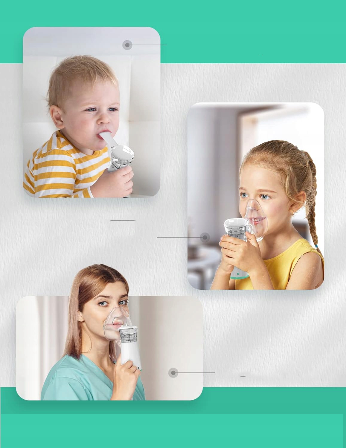 👍👍👍 Дитячий інгалятор Ідеальні аксесуари: Інгалятор У набір входять маска для дорослих, маска для дітей, мундштук і USB-кабель для зарядки, а також багатомовний посібник користувача. Дитячі маски адаптовані до форми дитячого обличчя, відрізняються високою посадкою і хорошою щільністю. Маски для обличчя більші, краще підходять і можуть використовуватися дорослими будь-якого віку та статі