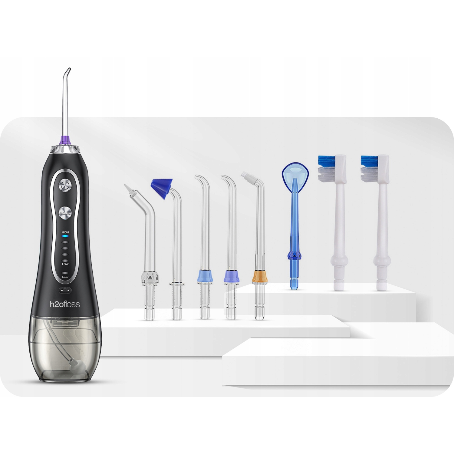 - 💦Включає 5 змінних насадок, щоб забезпечити індивідуальне рішення для потреб кожної людини в гігієні порожнини рота.