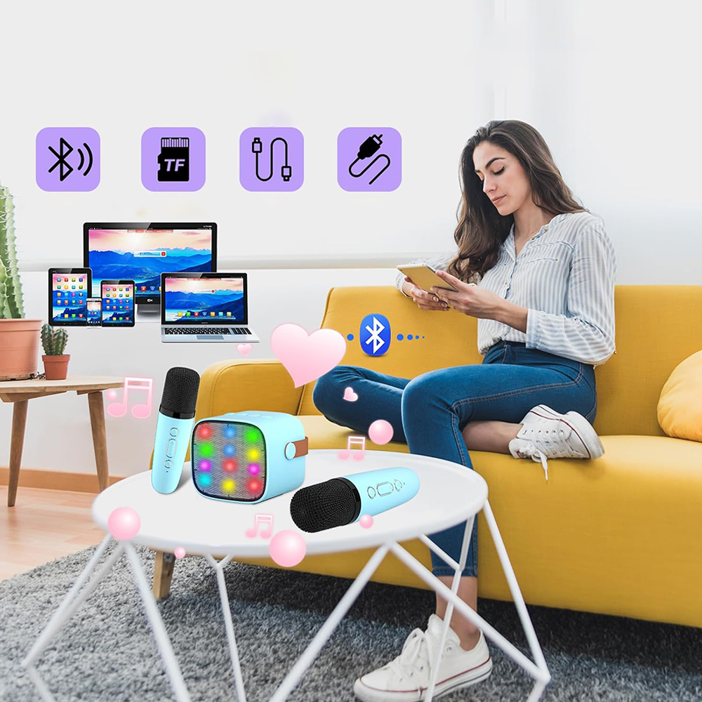 🎤 Maszyna для караоке Bluetooth з 2 бездротовими мікрофонами, після вмикання автоматичного підключення до динаміків має діапазон до 10 м і може індивідуально відрегулювати обсяг голосу/ехо/музику. Він підтримує Bluetooth 5.0 і сумісний із смартфонами, настільними комп'ютерами, ноутбуками та іншими музичними додатками, а з'єднання швидке та стабільне. Використовується як караоке -пристрій та мікрофон для загальних розмов.