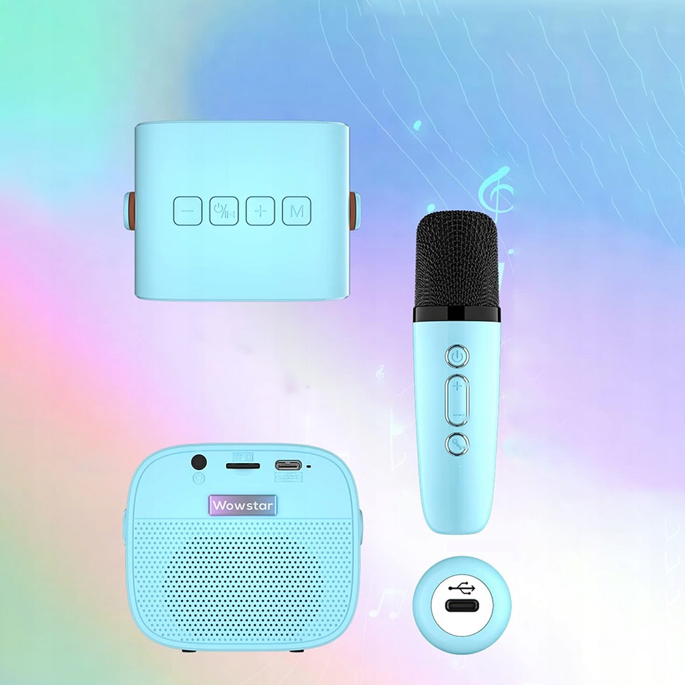 Портативний караоке Bluetooth + 2 мікрофонний синій набір