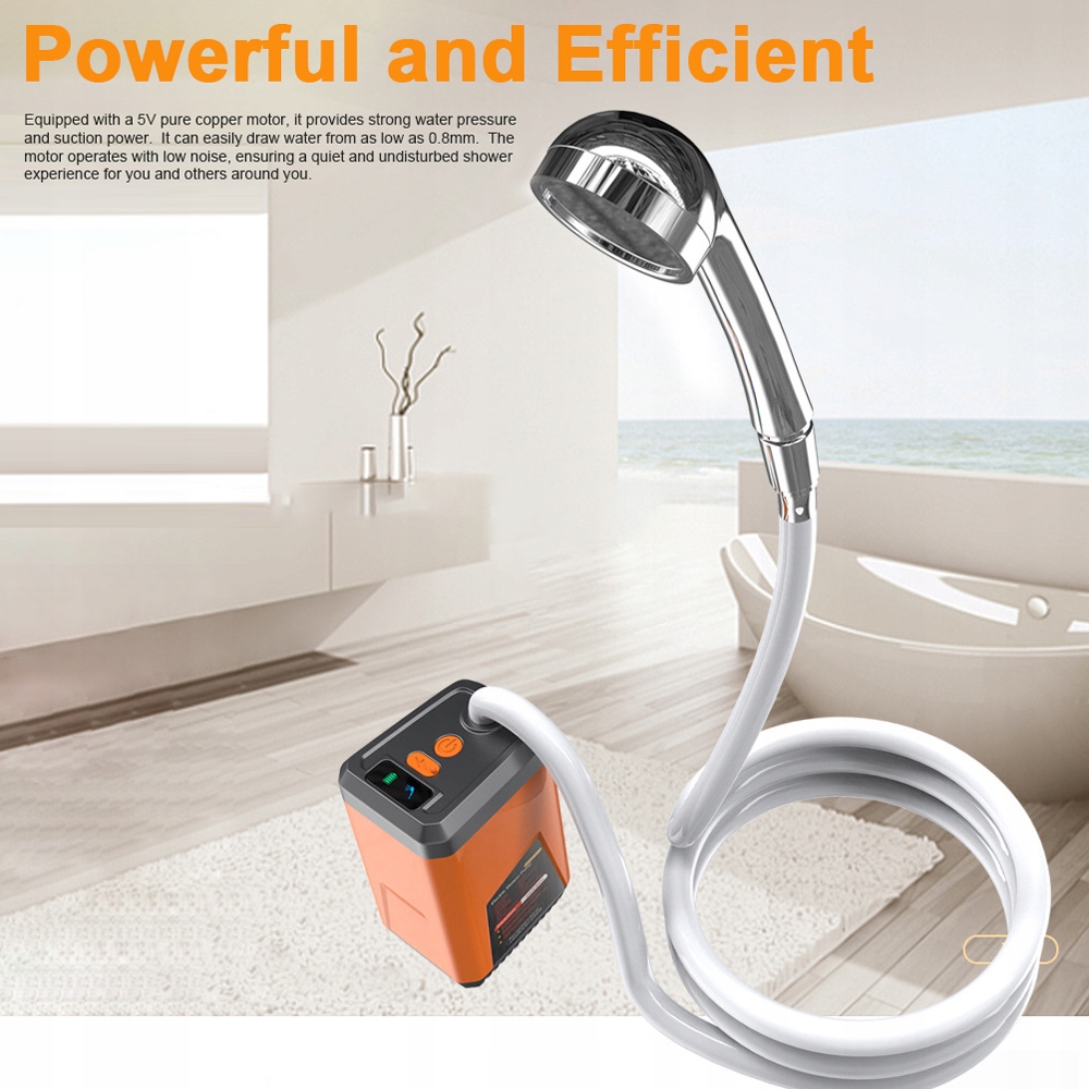 3. Довгий -терміновий акумулятор: вбудований -в 3600 мАг акумулятор пропонує довгі враження від душу. Після повного заряду він може забезпечити постійне використання протягом 70-90 хвилин, що дозволяє насолоджуватися освіжаючим душем навіть у віддалених районах. Швидкий інтерфейс зарядки C підтримує різні джерела енергії, такі як енергетичні адаптери, енергетичні банки та зарядні пристрої для автомобілів, завдяки якому зручно зарядитись там, де ви не є.