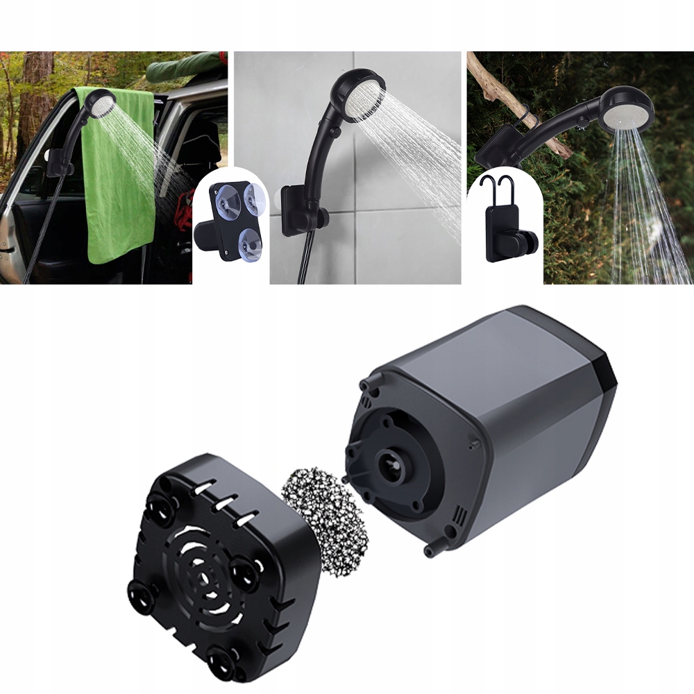 Портативний кемпінг з душем з акумулятором постачається з сітчастою сумкою, яку легко переносити та зберігати. Підходить для використання всередині і зовні, у саду, на кемпінгу, на грилі, під час походу, на пляжі, на подорожі, у ванній кімнаті для дітей, під час очищення домашніх тварин, прибирання автомобіля та поливу рослин.