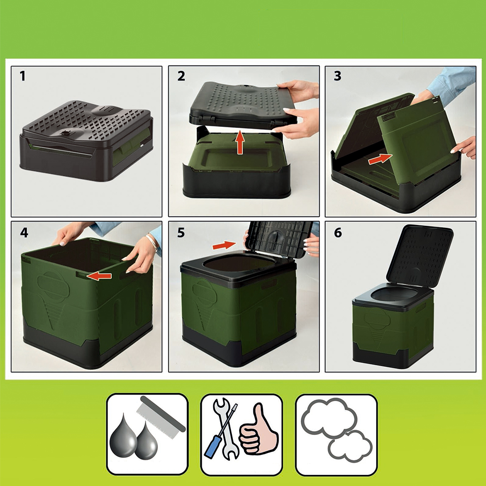 ✔ Цей складний туалет ідеально підходить для кемпінгу, для занять на свіжому повітрі, довгих подорожей, він може відігравати ключову роль у надзвичайних ситуаціях.