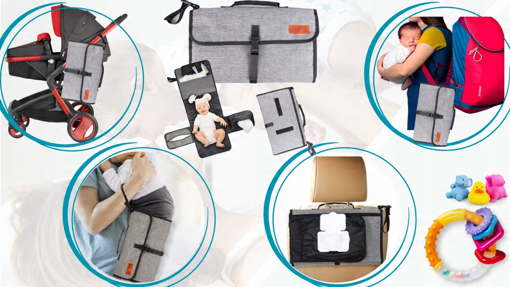 - ✅Завдяки регульованій ручці, що застібається на застібку, ви можете прикріпити пеленальний столик, наприклад, до коляски, сумочки або рюкзака. Ви також можете тримати його в руці