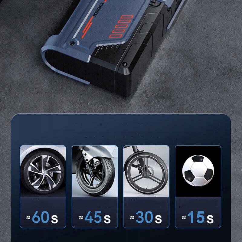 - Він має функцію накачування, яка може накачати стандартну автомобільну шину за лічені секунди та автоматично зупиняється, коли вона заповнена.