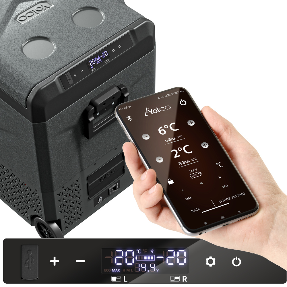 холодильник Yolco TCX60 має вбудований -in Bluetooth 5.0, завдяки якому ви можете керувати його налаштуваннями, а також монітор, наприклад, рівень температури або ступінь заряду, використовуючи кілька швидких жестів на телефоні.