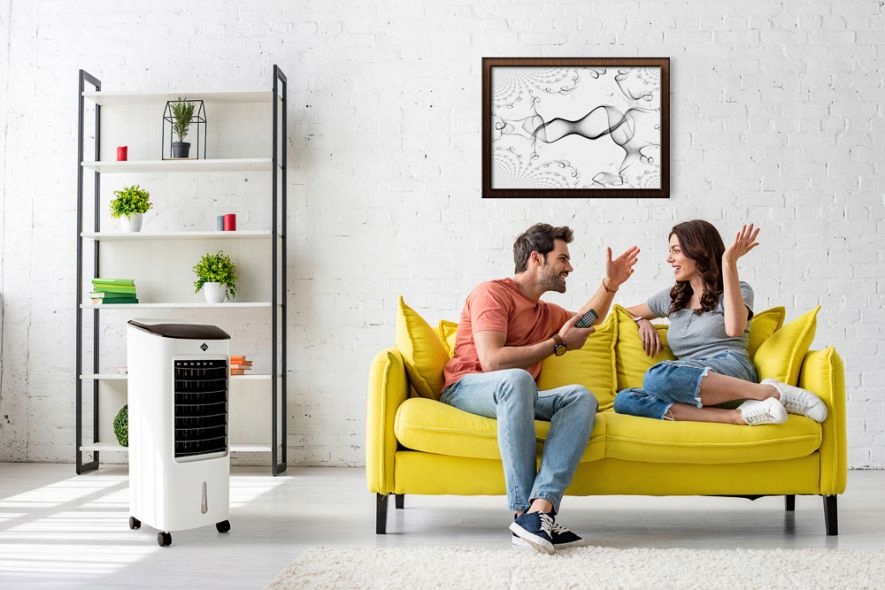 Цей пристрій охолоджує, вентилює та зволожує повітря у житлових кімнатах. Він працює тихо, є енергозберігаючим і екологічно чистим, оскільки звичайна вода слугує фактором охолодження та через випаровування поглинає тепло.