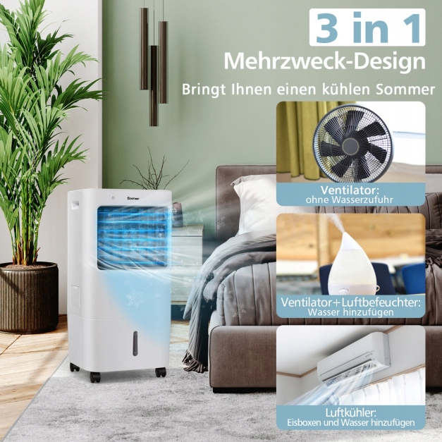 Компактний і портативний кондиціонер : вентилятор випаровування має розміри 37 см х 32 см х 74,5 см, що ідеально підходить для кімнат з обмеженим простором. Вбудована ручка та плавні колеса дозволяють легко переміщати вентилятор куди завгодно, напр. Б. у вітальні, спальні та кабінеті.