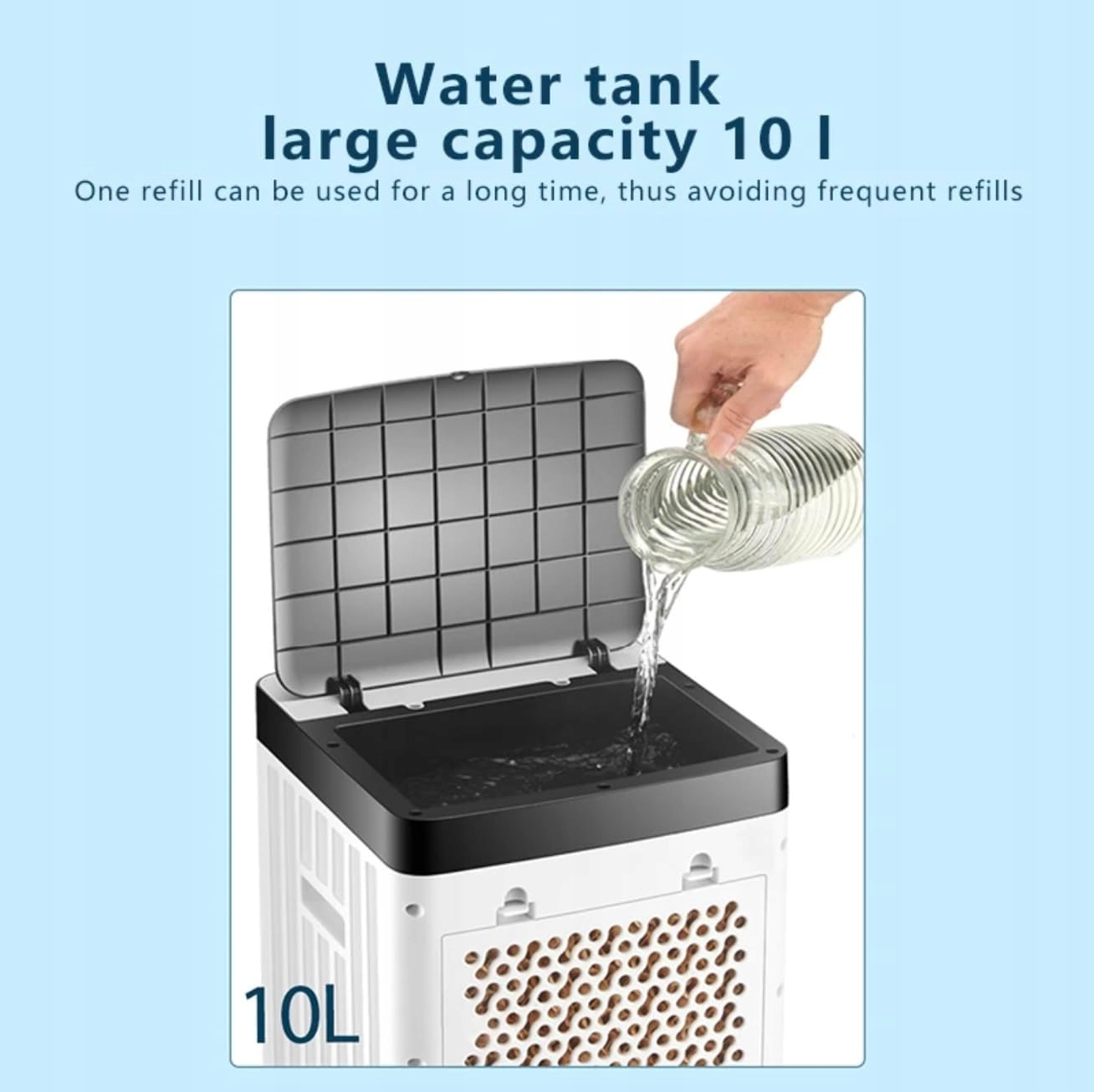 - ✅【Великий резервуар для води об’ємом 10 л】Цей баштовий вентилятор кондиціонера має резервуар для води великої місткості, який забезпечує тривалий час охолодження та зволоження, що ідеально підходить для збереження прохолоди влітку.