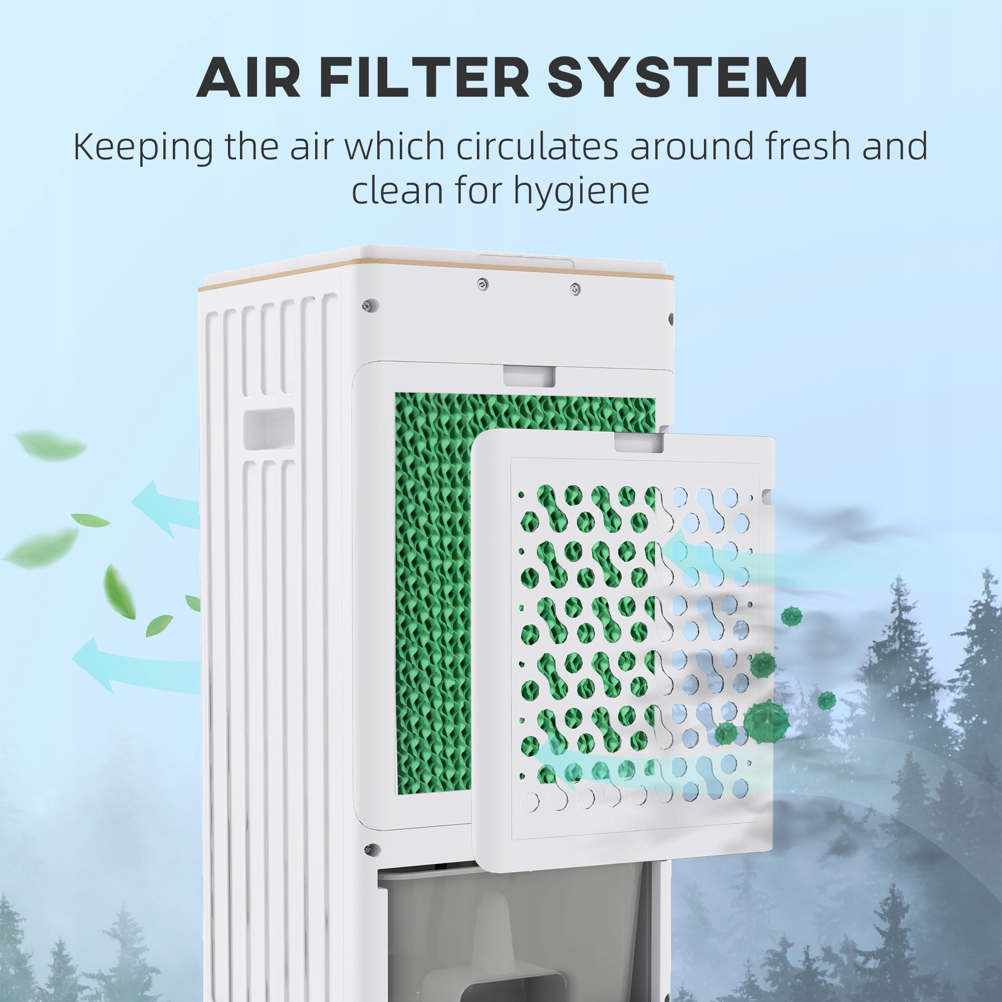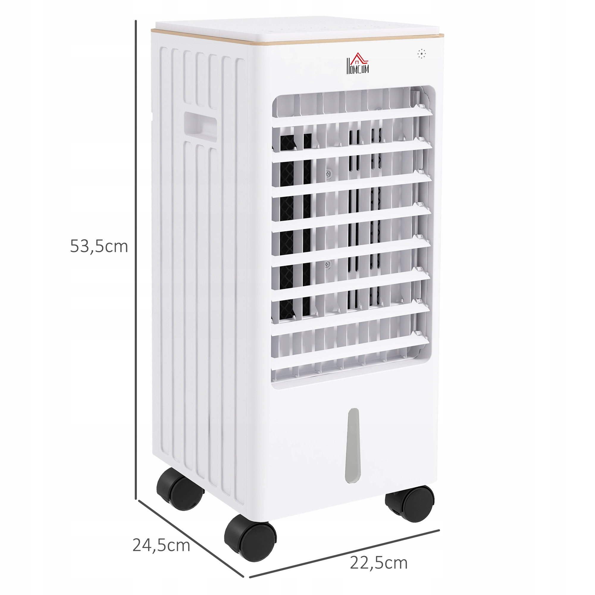 Дихайте глибоко з цим портативним кондиціонером HOMCOM! Цей інноваційний кондиціонер ідеально підходить для приміщень площею до 20 м²: він забезпечує свіже повітря, приємне охолодження, а також діє як зволожувач повітря. Завдяки трьом режимам (звичайний, природний, сон), різною швидкістю, діапазоном коливань 60° і практичним 7,5-годинним таймером вентилятор забезпечує ідеальну атмосферу в кімнаті. Дистанційне керування та світлодіодна панель полегшують роботу.