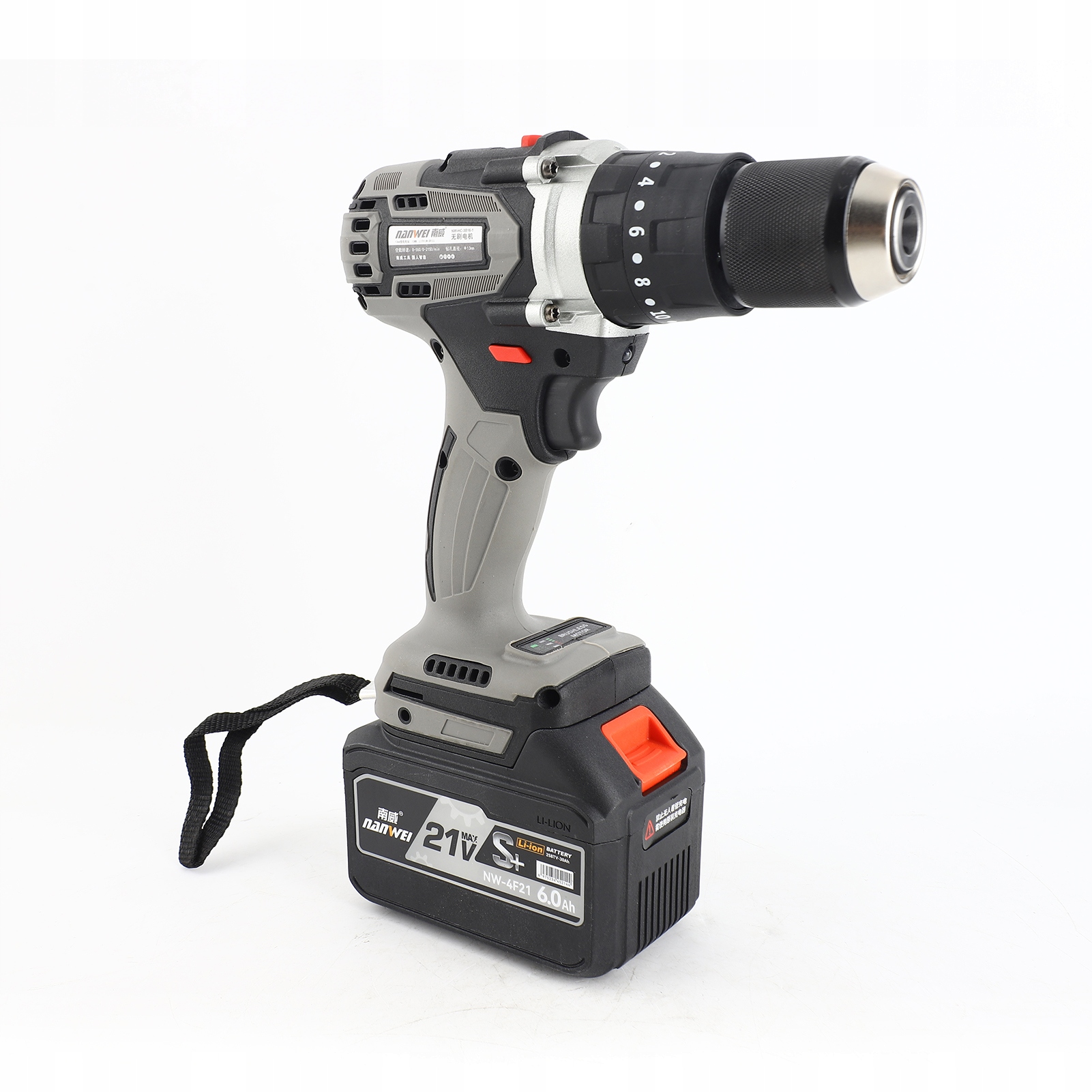 3. Акумулятор 21 В 6,0 А: максимум 21 В 6000 мАг Літій-акумулятор великої ємності достатньо потужний, щоб дриль безперервно працював протягом 10 годин після заряджання. Індикатор на передній частині ходу свердла, щоб показати, скільки енергії залишилося, щоб скоротити час простою під час роботи.