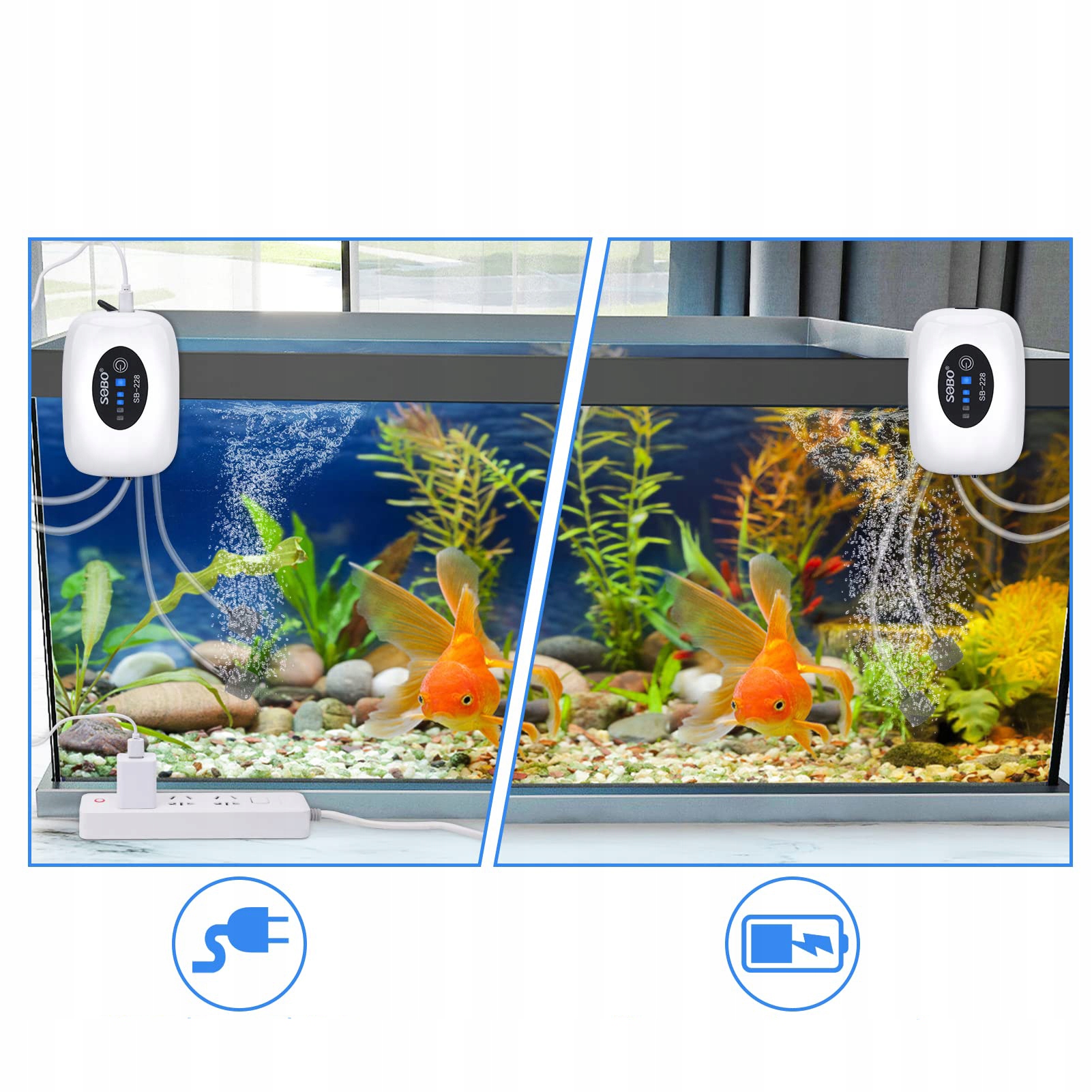 Стандартний універсальний USB -інтерфейс: Акваріумний аератор може бути заряджений у різних сценаріях.