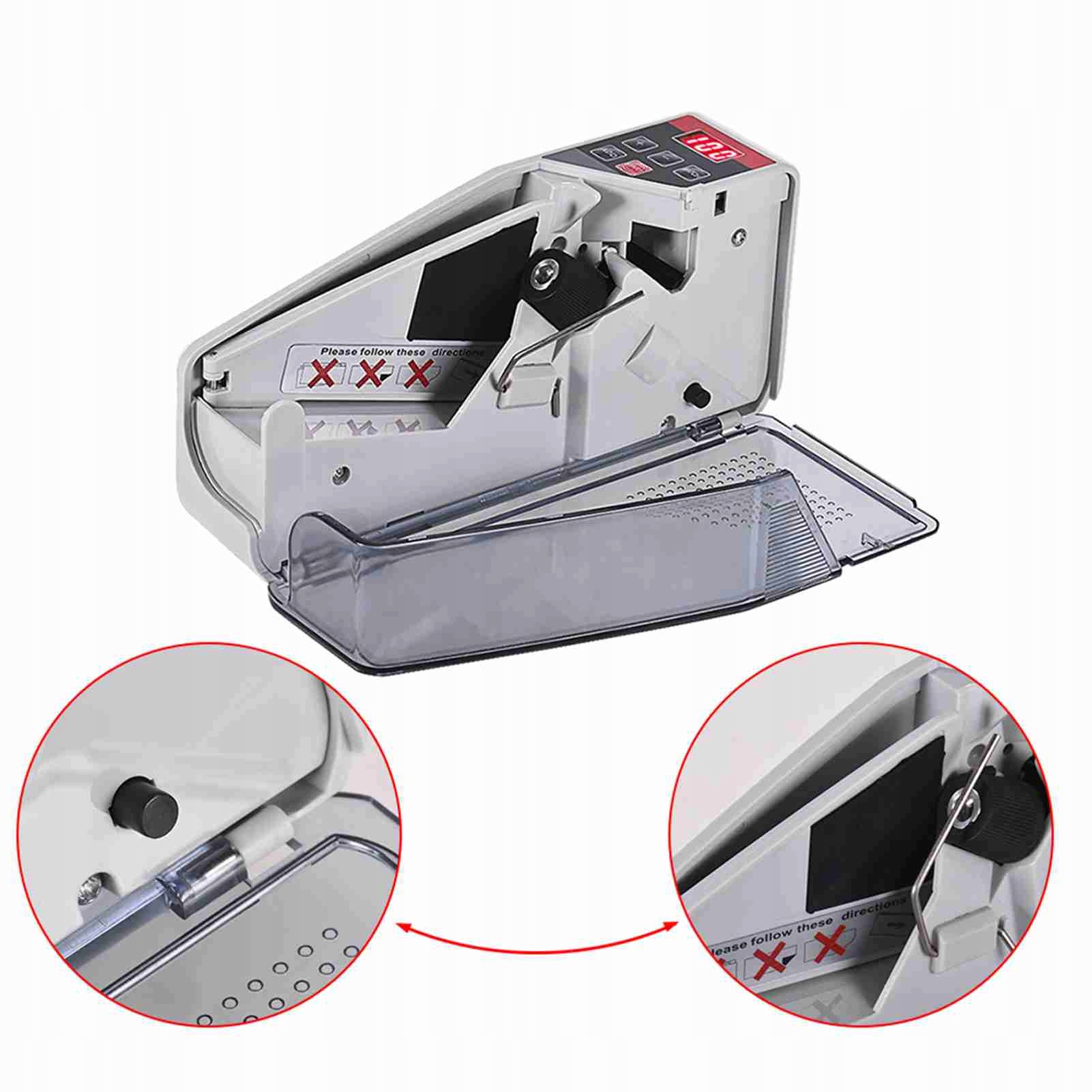 - Працює на адаптері живлення або 4*АА АА, зручні для використання в будь-якому місці. Якщо ви не використовуєте лічильник грошей, він автоматично перейде в режим сну, поки ви знову натиснете кнопку живлення. (Батареї не включені)