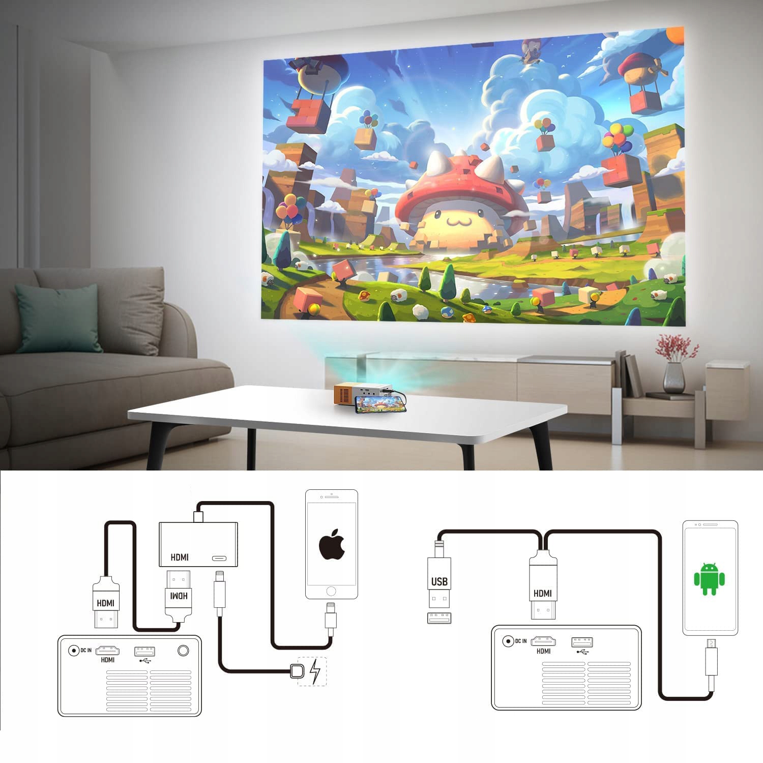 Цей Міні-проектор A10 використовує найновішу технологію синхронізації екрана смартфона WIFI, щоб легко підключити ваш пристрій, просто підключившись до тієї ж мережі WIFI, що й телефон. Доступно як для iOS, так і для Android. Поділіться своїм життям із друзями та родиною!