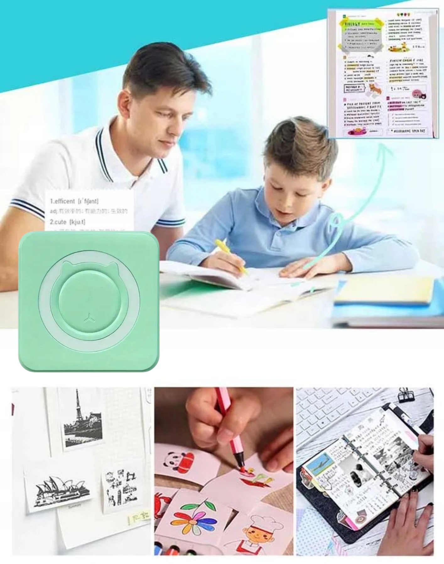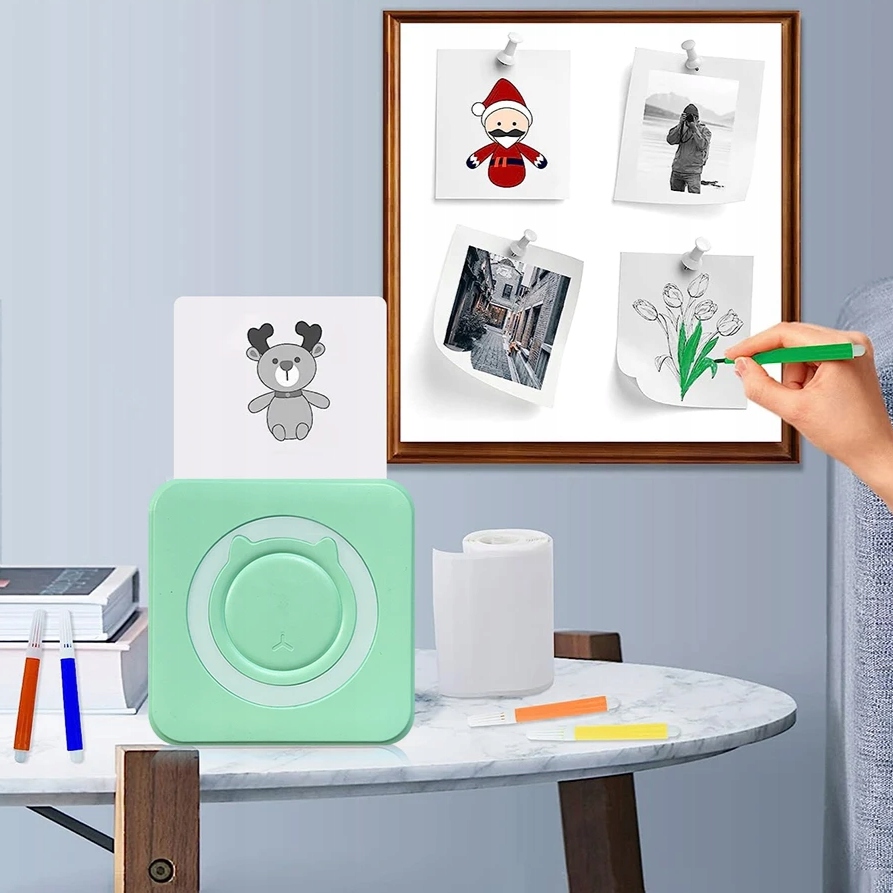 Портативний міні термопринтер для дітей C15, зелений, Bluetooth Drukuś