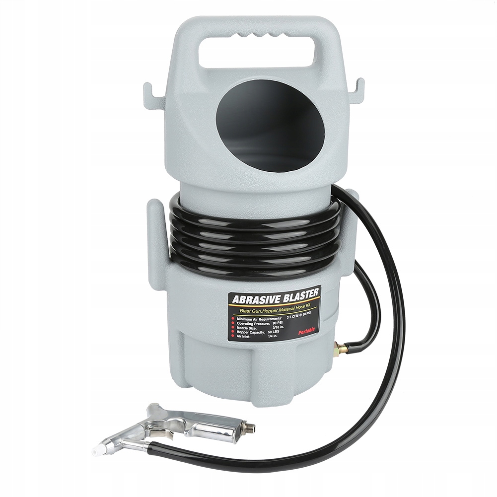1. Включає пістолет з піскоструминкою, 15 -футовий шланг і резервуар, який може вмістити абразивний матеріал до 50 фунтів.