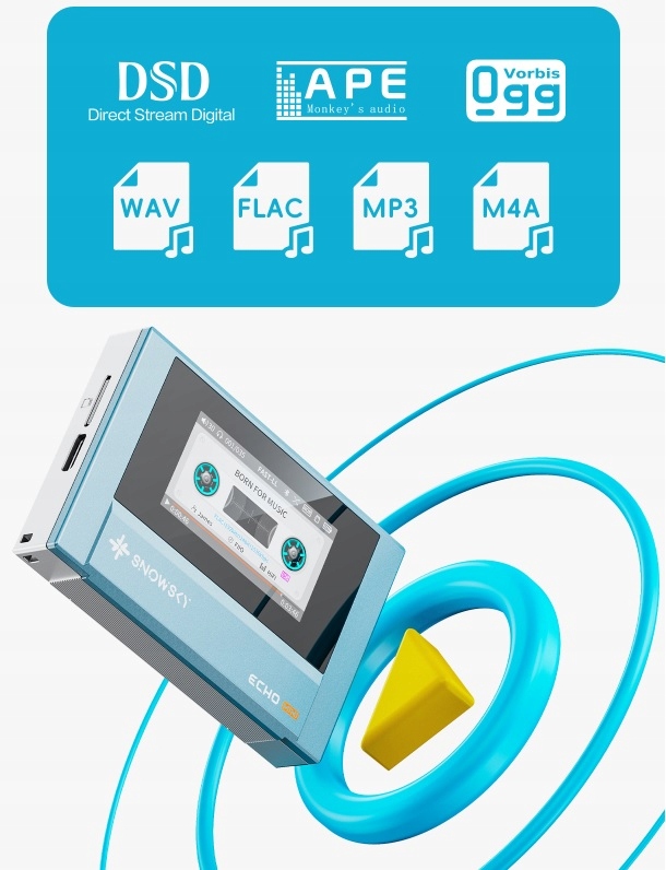 Підтримує формати DSD, WAV, FLAC, APE, MP3, M4A та OGG.
