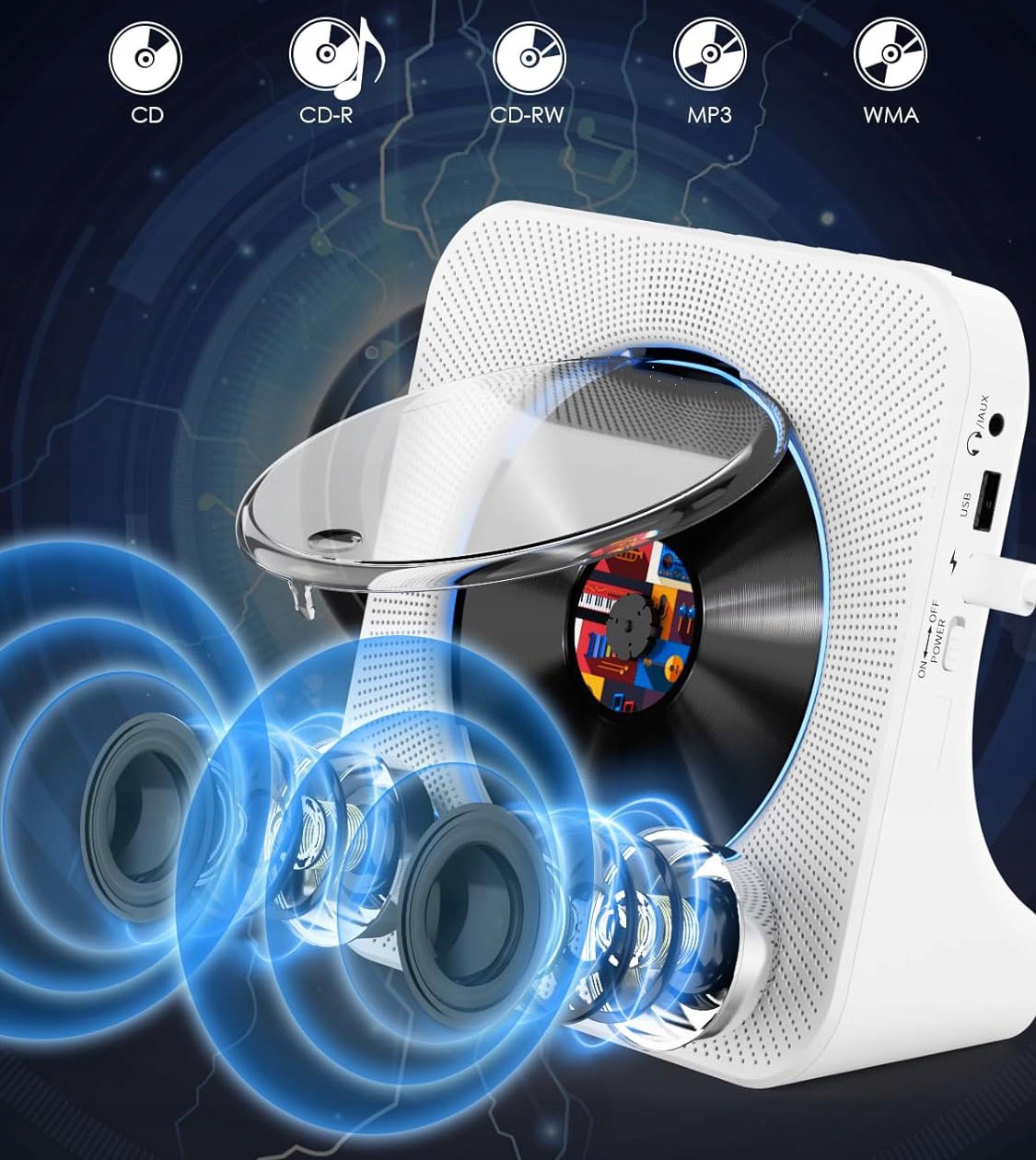 💿💿 Широка сумісність: підтримує Аудіоформати CD/MP3/WMA/CD-G. Домашній музичний CD-програвач також підтримує USB і FM-радіо. Радіочастота 76-108,0 МГц. Ви можете слухати музику з радіо, CD, U-диска, мобільного телефону.