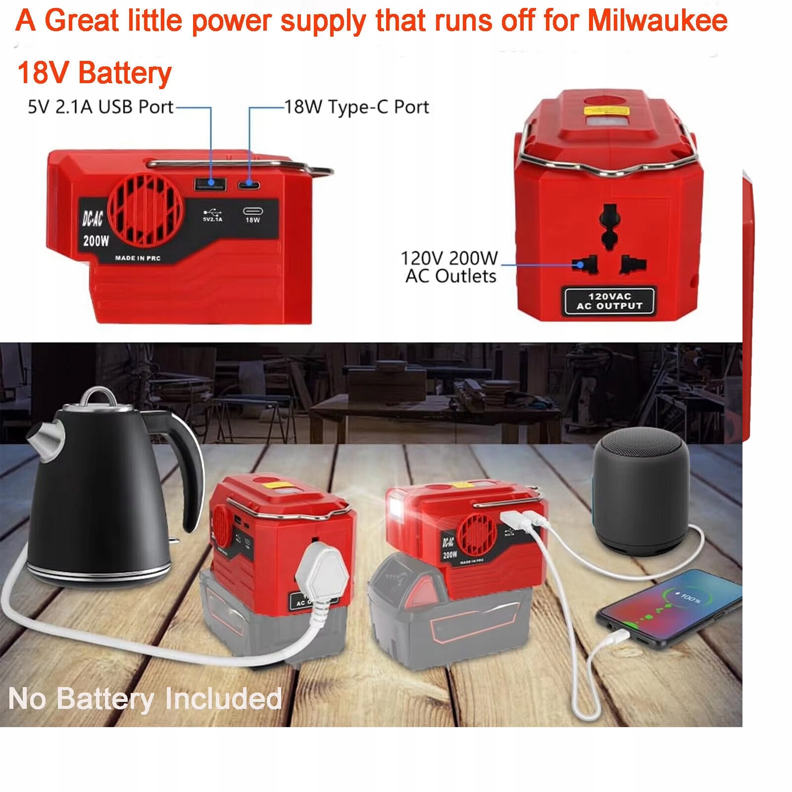 Портативний перетворювач напруги 200 Вт 120 В/220 В для акумулятора Мілуоке з лампою