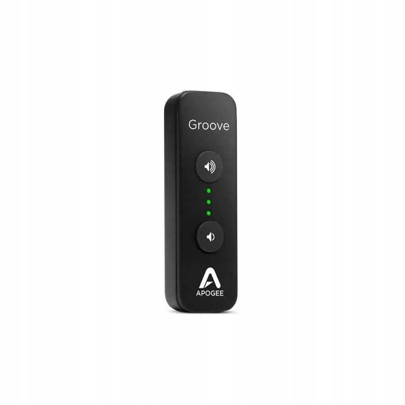Apogee Groove - це портативний перетворювач DAC USB та підсилювач для навушників в одному, призначений для Mac та PCS та мобільних пристроїв. Цифровий підсилювач USB та навушників для прослуховування музики на Mac або ПК. Apogee Groove використовує ту саму високоякісну аудіотехнологію, яку можна знайти в найпрестижніших студіях звукозапису у світі та забезпечує її для ноутбука. Підключіть канавку Apogee до USB -порту комп'ютера, а навушники або активні динаміки для виходу аудіо канавки. Це так просто. Вихід Apogee Groove забезпечує достатню потужність при будь -якому імпедансі, а технологія Apogee постійного струму Drive ™ робить навушники звучати чудово. Ви будете здивовані різницею якості звуку - точне стерео -зображення, сильні басові та приголомшливо чисті високі тони. DAC