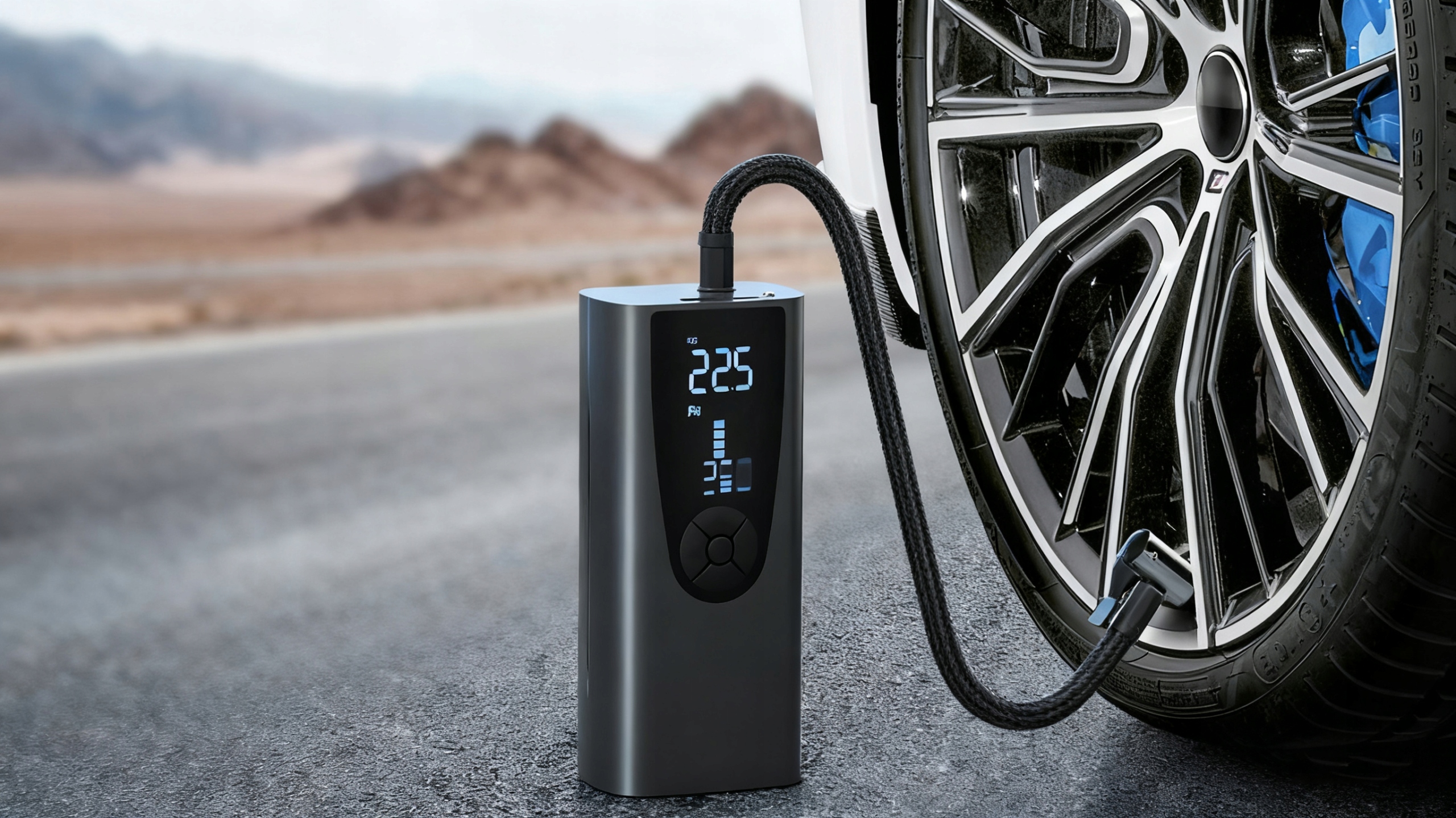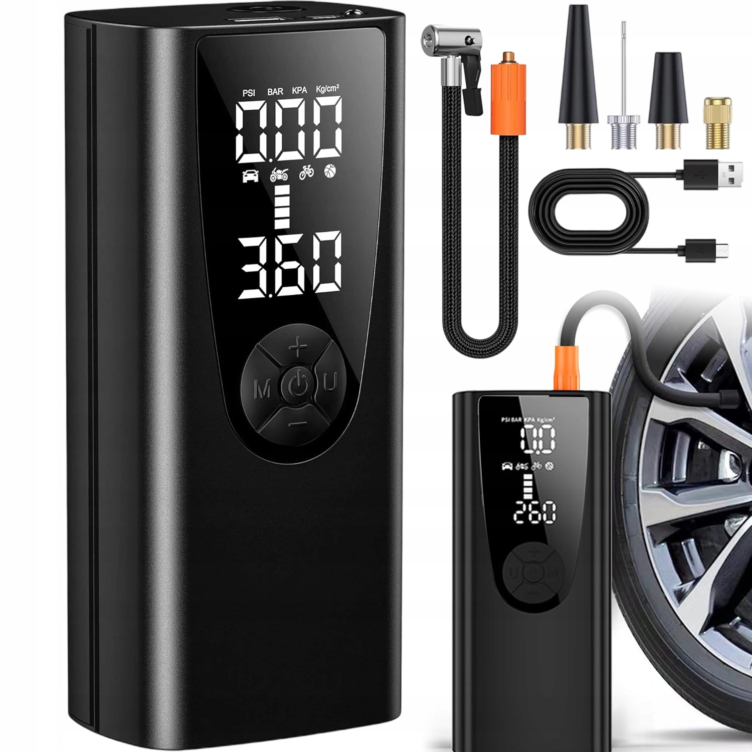 - Портативний насос для накачування шин оснащено 10000 Акумулятори mAh.