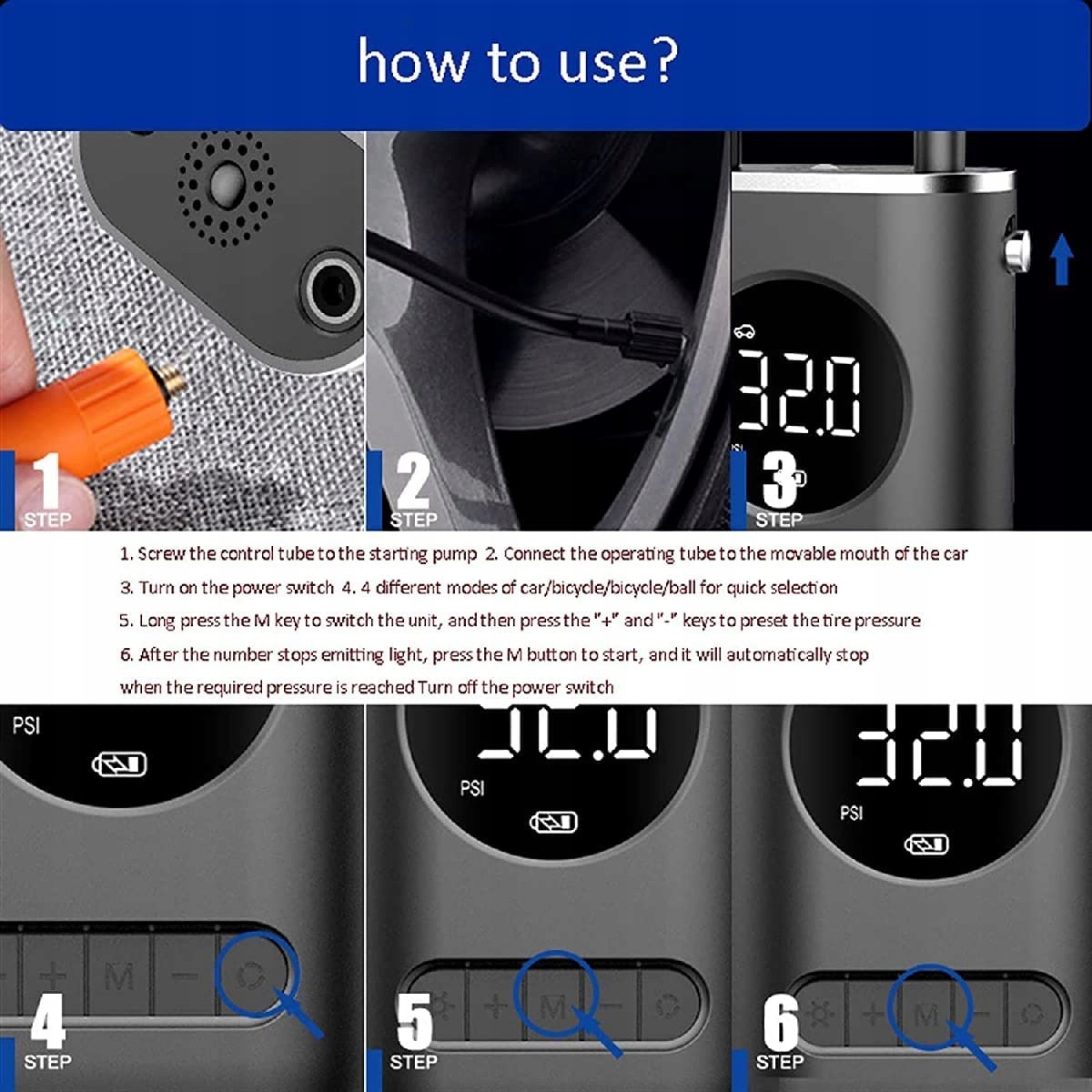 1. Маленький корпус, висока потужність, користувач може розмістити його в ящику для інструментів або в кутку автомобіля. 2. 100 нових і нових покращених насосів для накачування шин 4 важливі вдосконалення. Міцніше, довговічніше, швидше і менше шуму. 3. Робить накачування низьких і спущених шин у надзвичайних ситуаціях простішим і зручнішим. Манометр повітряного компресора PSI KPA KGFCM2. 4. Вбудована нова конфігурація високозносостійких поршневих кілець, міцних і надійних. 5. Простий у використанні, не впливає на мікроклімат місцевого руху, наприклад, у віддалених гірських районах, шосе по дорозі, щоб вийти з роботи, вітер і дощ та інші ворожі погодні умови. Екстрена в будь-який час, зручно та економить час.