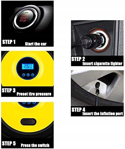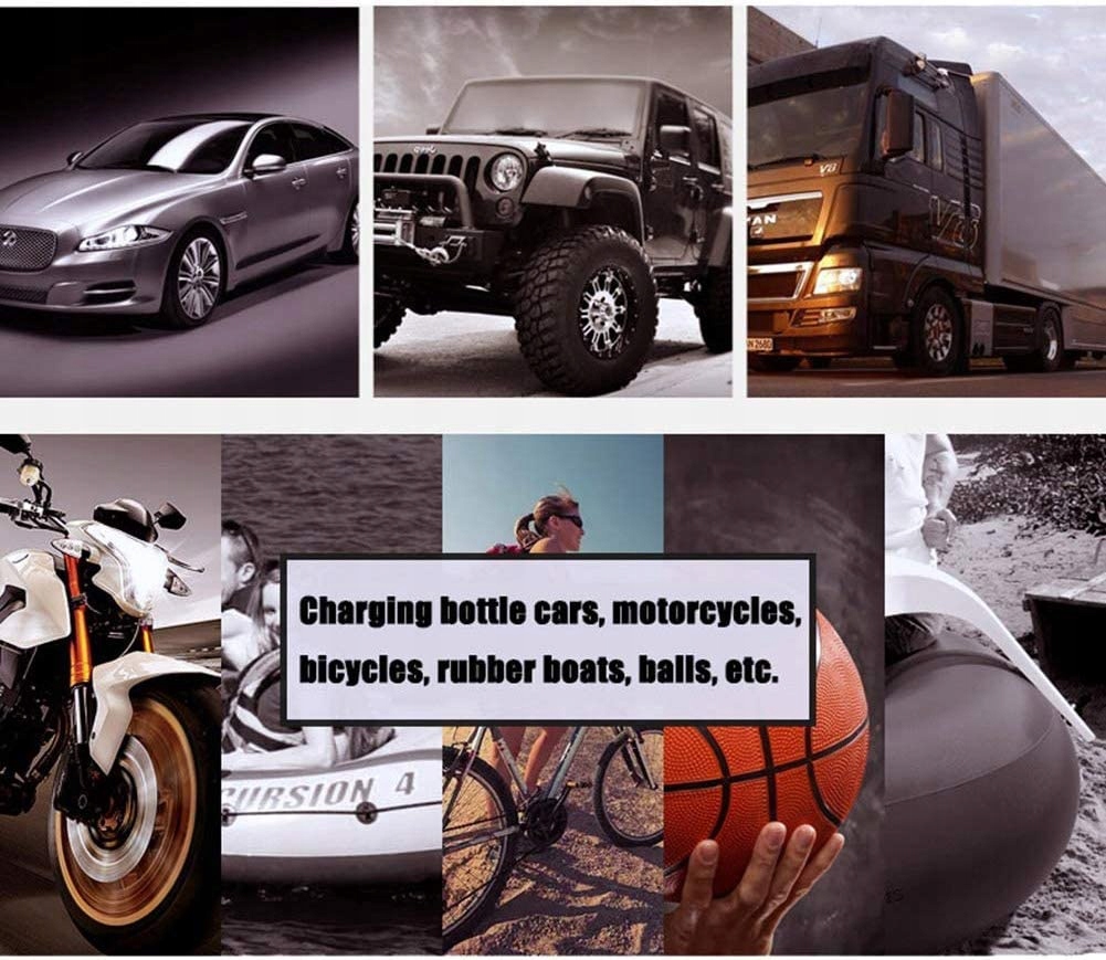 Автоматичне відключення при досягненні заданого тиску. Вам не потрібно хвилюватися про надмірне чи недостатнє накачування шин. Ви можете залишити пристрій у звичайному режимі Яскраве світлодіодне освітлення дозволяє легко працювати в темряві та гарантувати, що вас буде видно в надзвичайній ситуації Легке зберігання та портативність Легке зберігання в автомобілі Інструменти добре організовані та легкі, тому ви можете брати їх із собою та використовувати їх де завгодно. Швидке накачування шин Насос для накачування шин – це найшвидший і найпростіший спосіб накачування повітрям у шини автомобіля. Накачування плоского ліжка зазвичай займає хвилин 40. Широко використовується для автомобілів, велосипедів, мотоциклів, кемперів, кемперів, позашляховиків, квадроциклів, вантажівок, труб і повітряних куль. 1 адаптер для насадок і 1 спортивна голка гарантують, що ви зможете надути все, що вам потрібно.