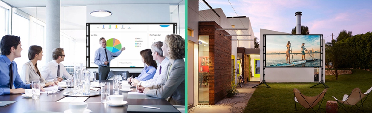 - ✅ Величезне зображення - 120 дюймів (16: 9) - повнота відчуттів кіно в HD та 4K. Проекція в передній та задній частині - ідеально підходить для використання в будь -якому місці
