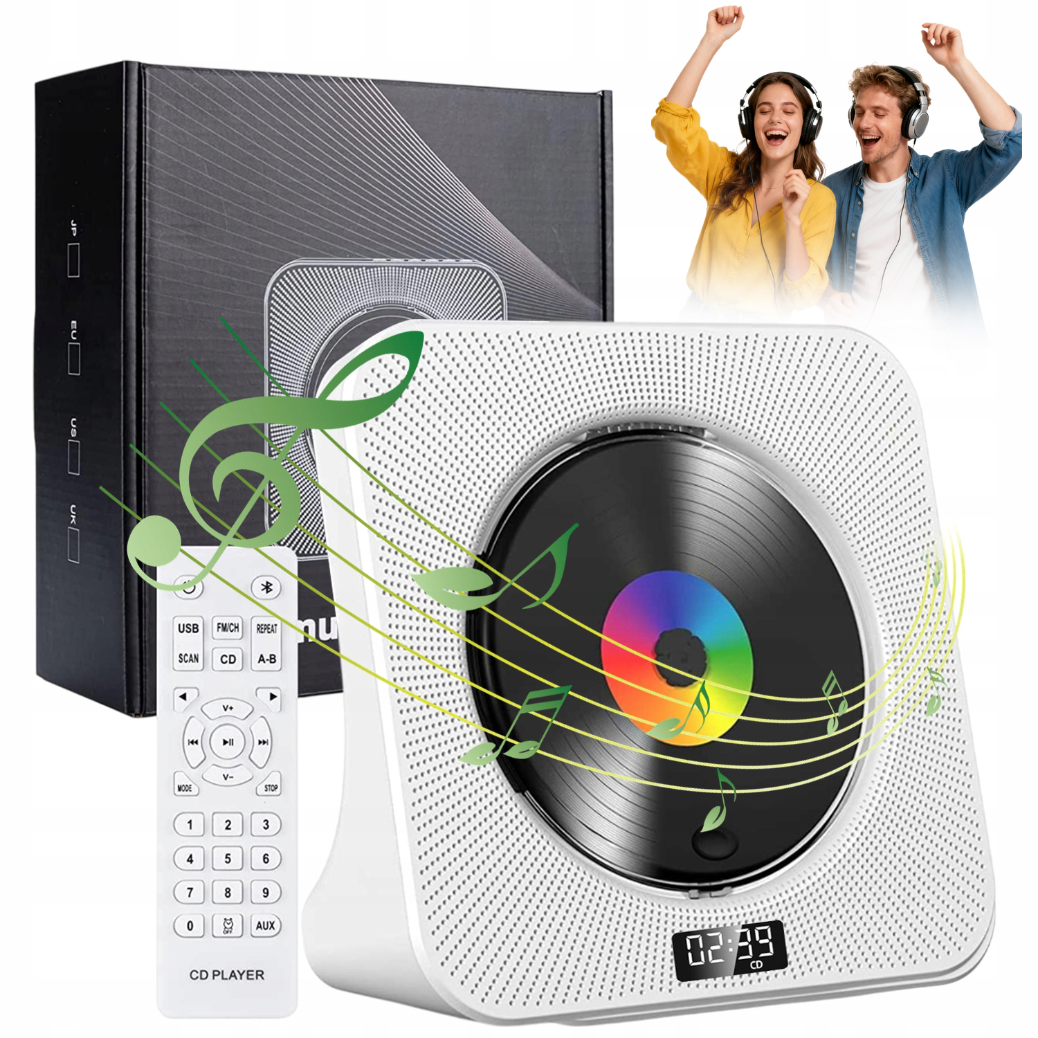 - Оснащено дисплеєм для зручного керування. Цей багатофункціональний музичний плеєр має 5 режимів: режим CD, режим Bluetooth, режим FM, режим USB і режим AUX. Різні режими мають різне освітлення для створення романтичної музичної атмосфери вдома. Поставляється з пилозахисним чохлом, пультом дистанційного керування та адаптером, програвач потребує живлення від кабелю живлення.